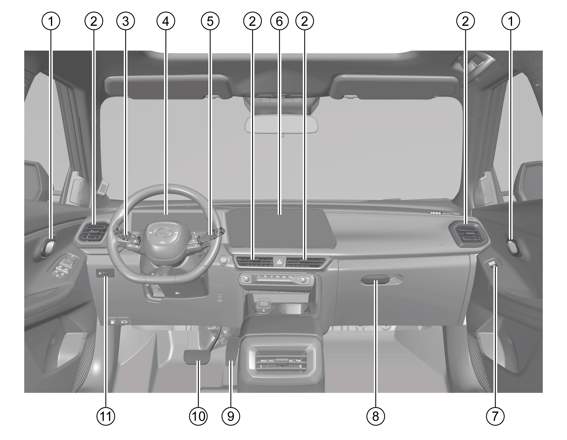 ⑦ 驾驶员侧电动车窗按键 电动车窗