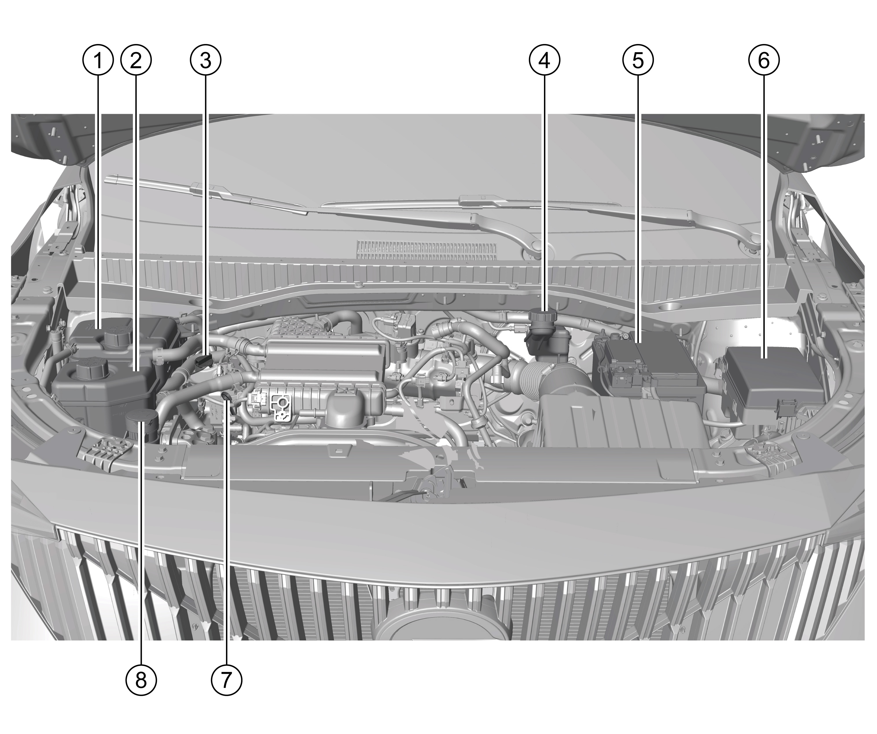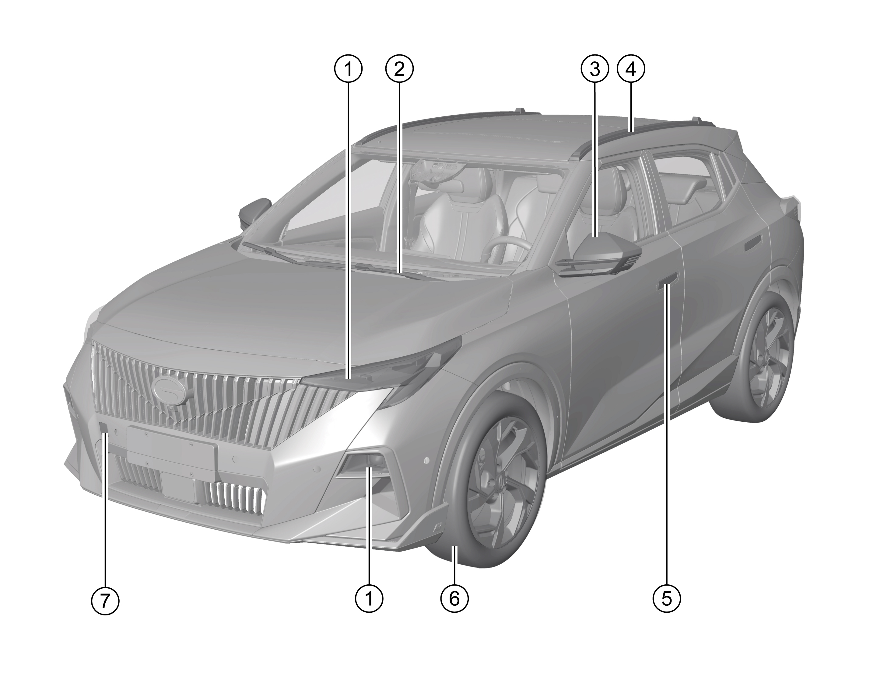 ⑧ 风窗洗涤液储液罐 风窗洗涤液和雨刮器片