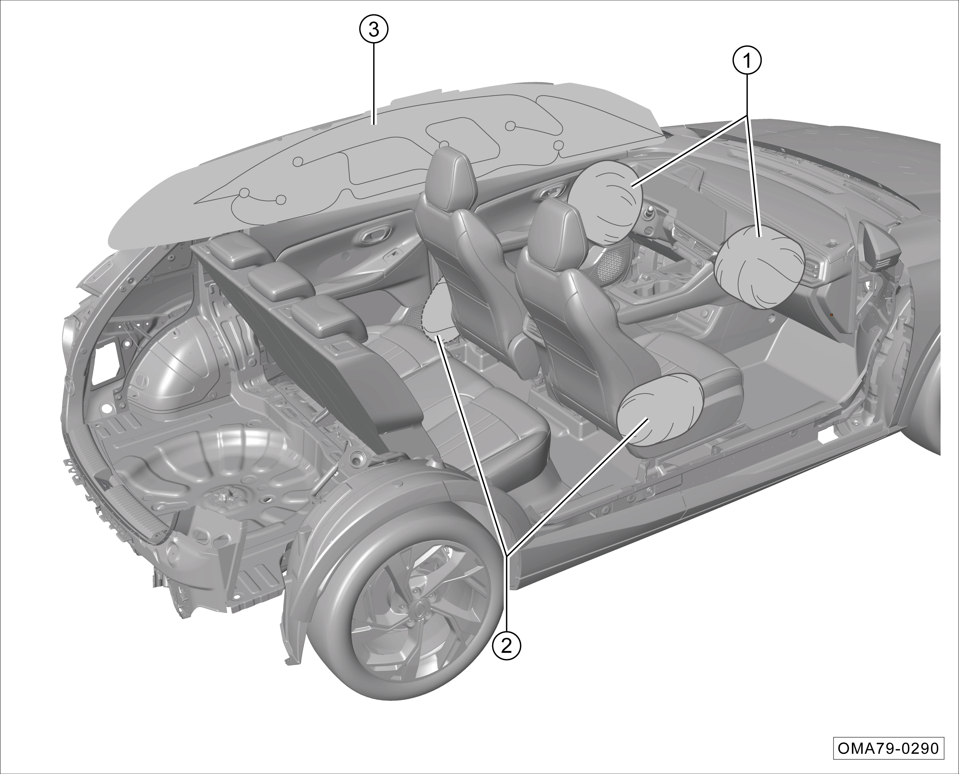 发生某些类型碰撞事故时,系统可能同时触发其它位置的安全气囊。