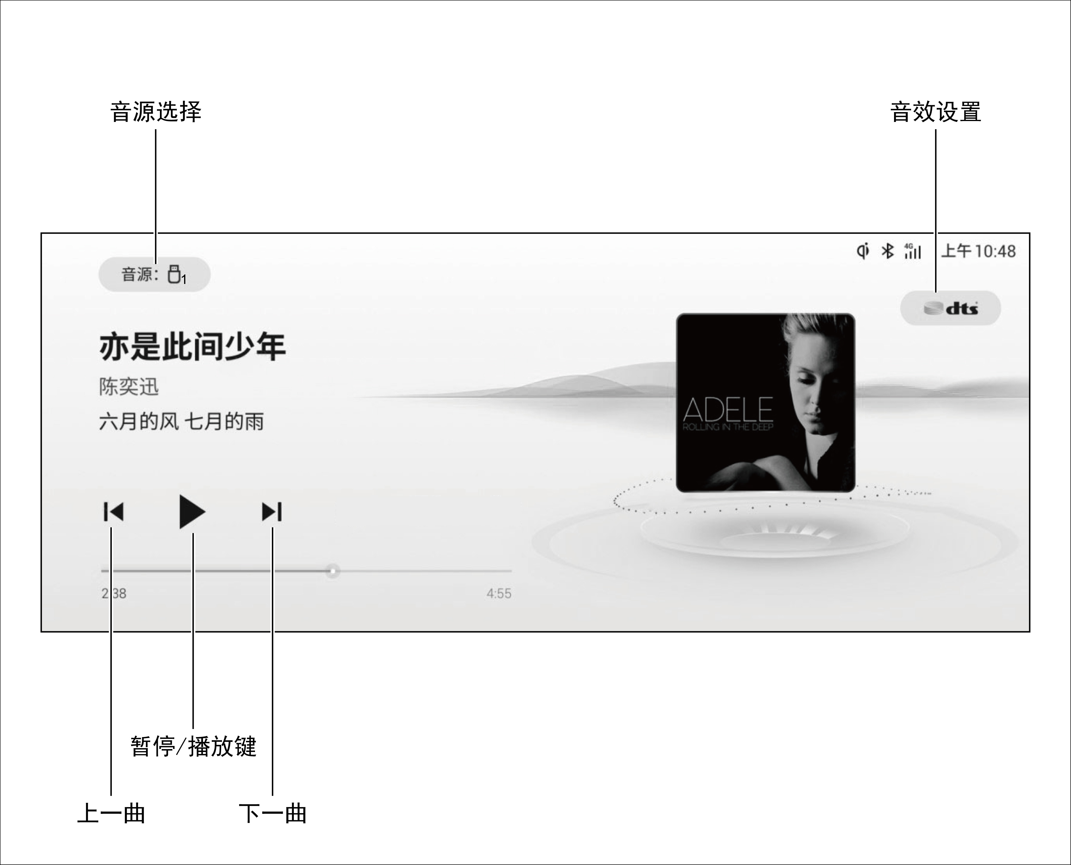 音响系统仅支持FAT16/32、exFAT、NTFS格式的USB设备使用,支持APE和FLAC格式的无损音乐。