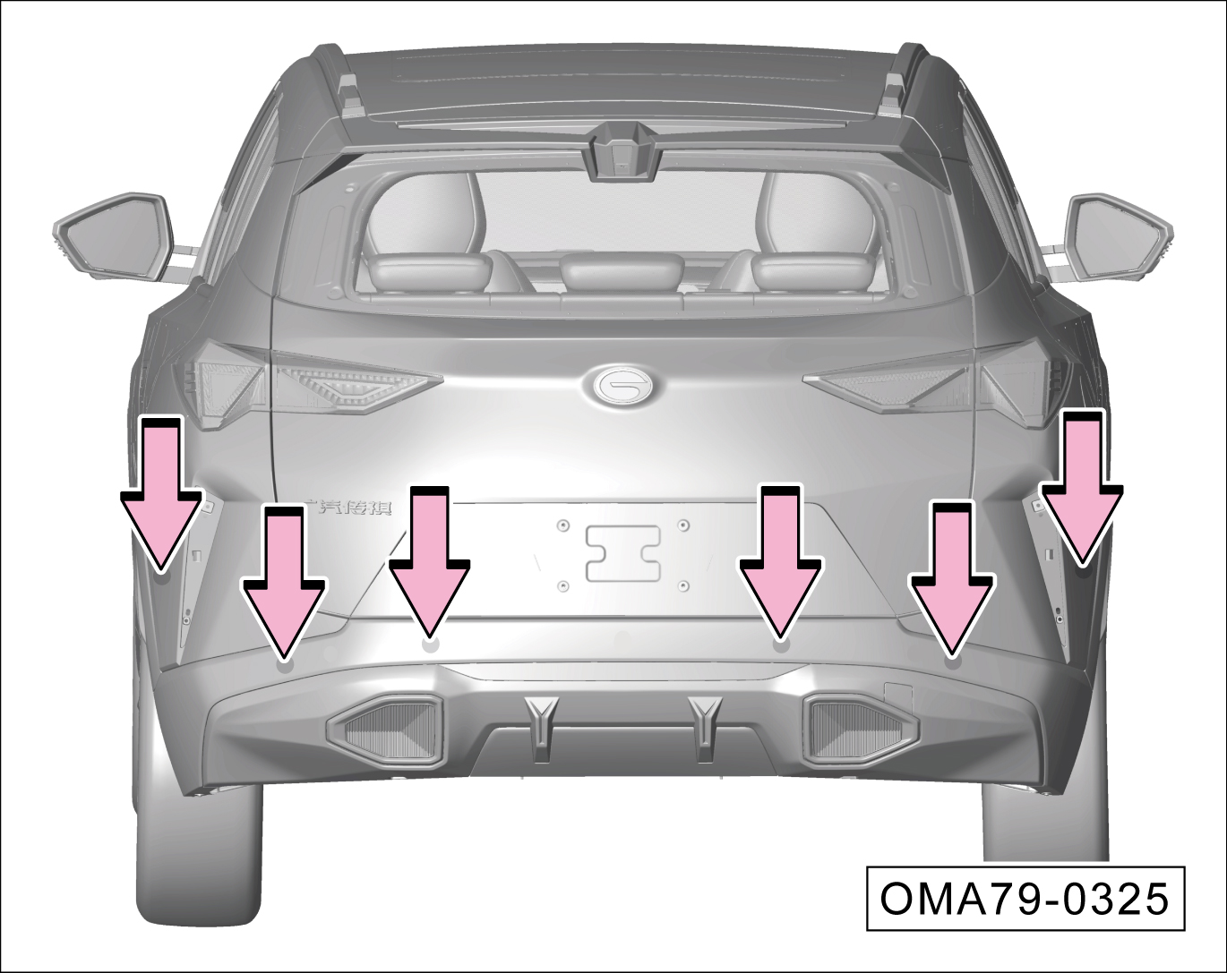 雷达传感器安装在后保险杠罩上。(适用于后雷达车型)