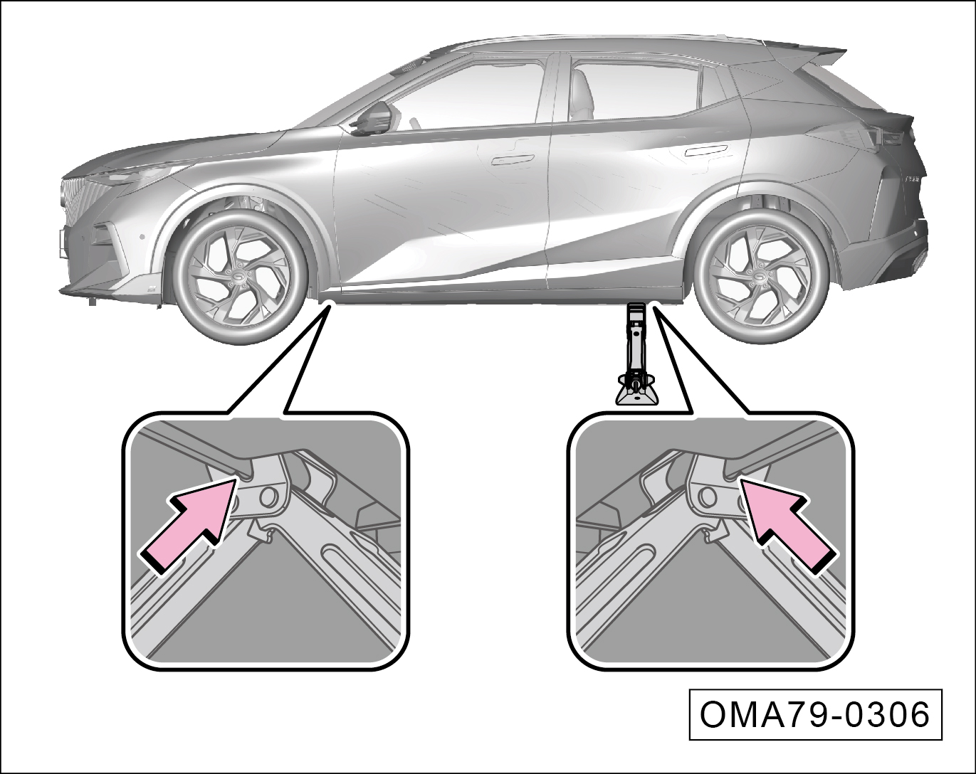 顺时针摇高千斤顶,举升车辆,使轮胎离开地面。