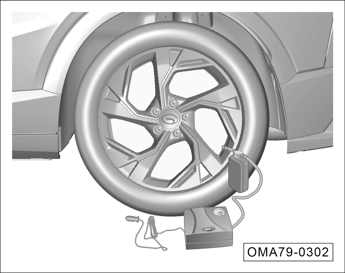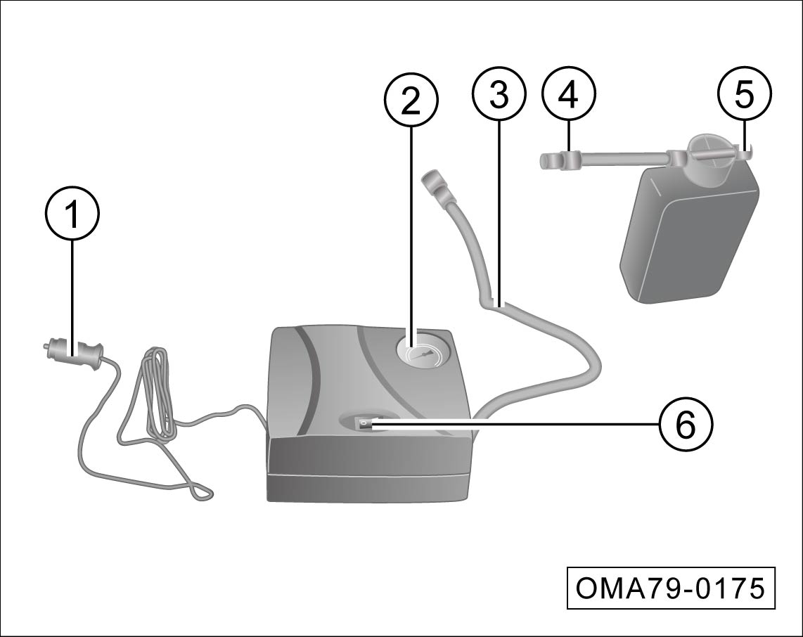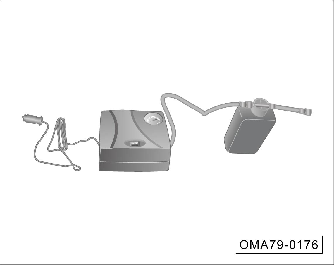 从行李箱内取出轮胎自动充气泵。