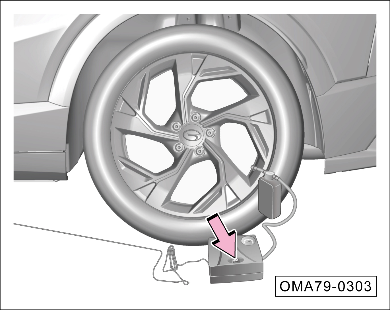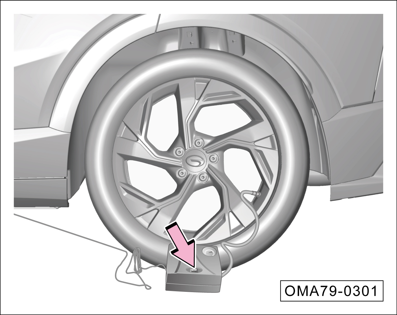 将车辆停靠在安全地带,再次将充气管与轮胎相接。