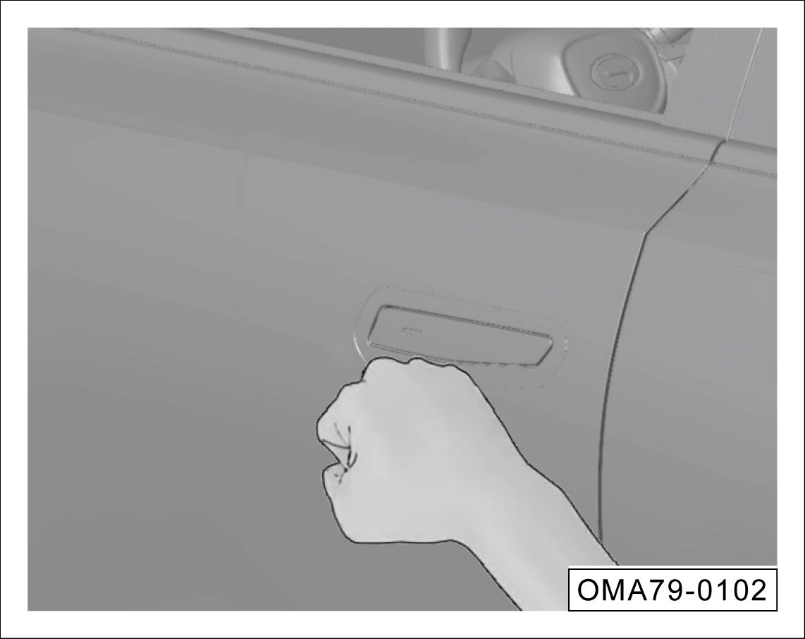 采用环形模式作业,以拳头底部稍微用力击打车门把手的周围,破坏并释放积聚的冰,按遥控钥匙电动展开门把手。
