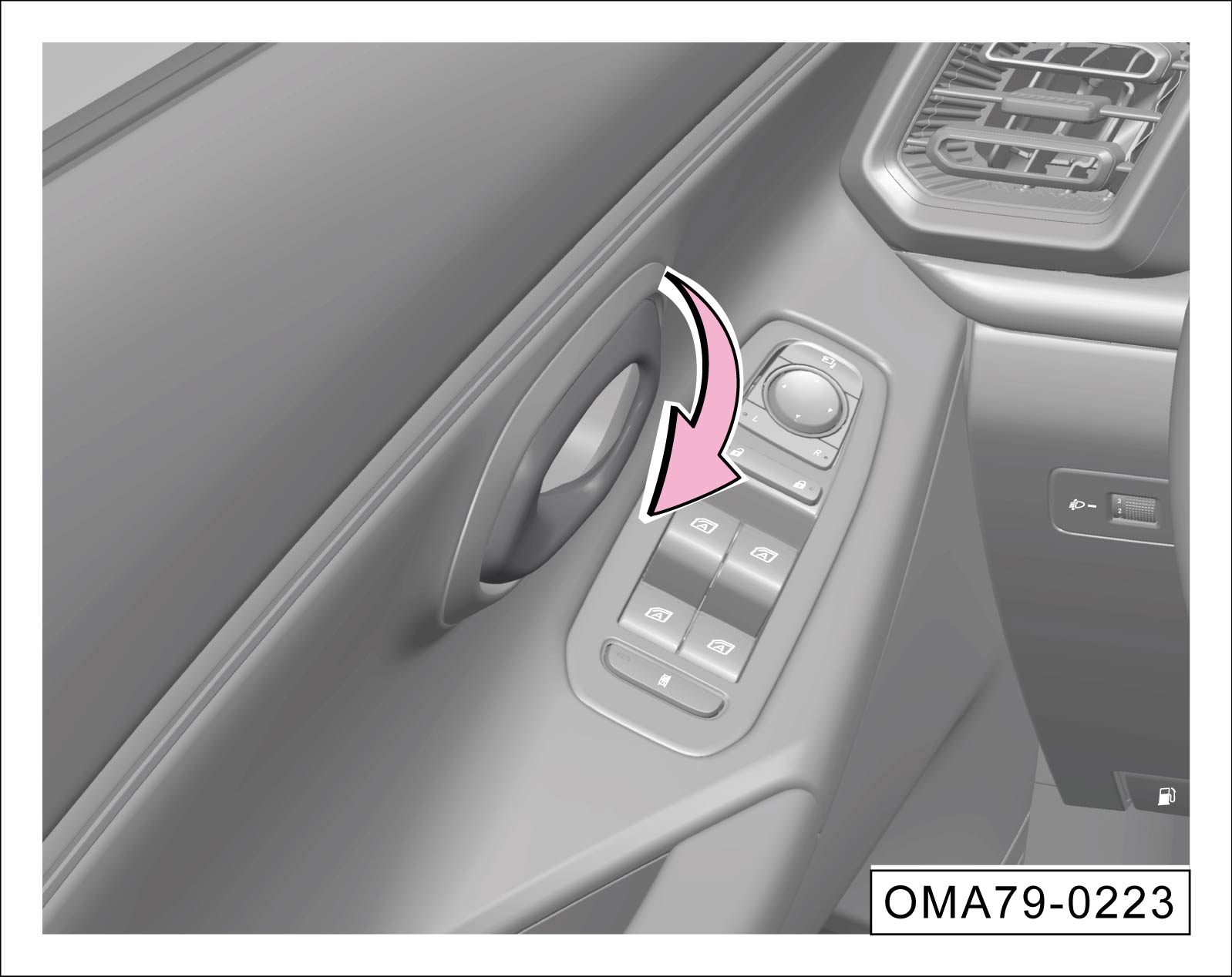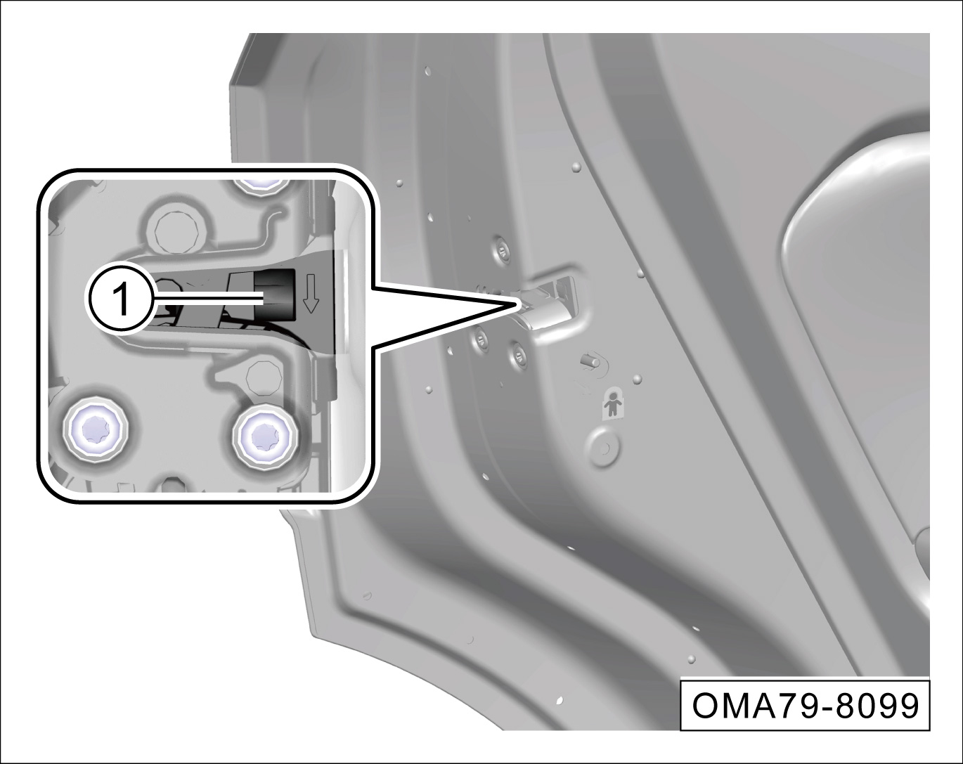 向下拨动锁止开关①,关闭车门,即可应急上锁对应侧车门。