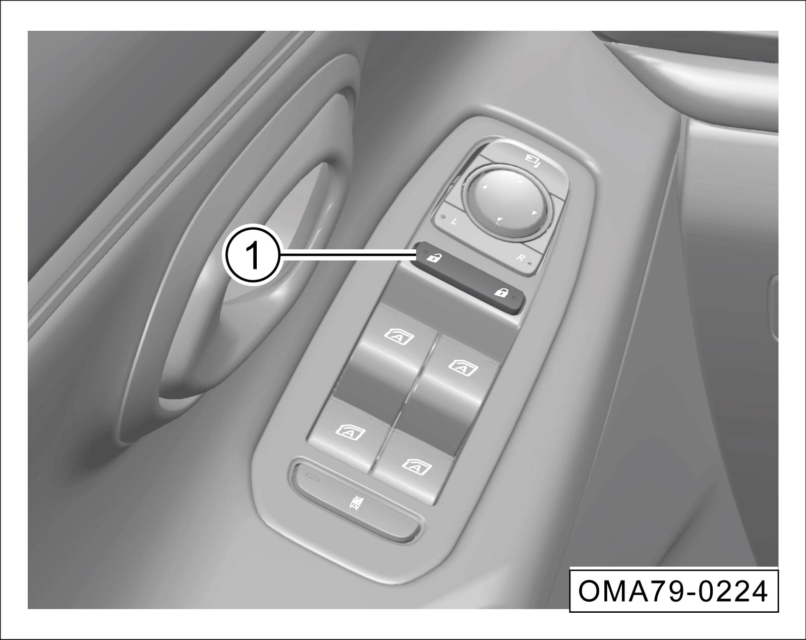 中央门锁按键①可以在车内闭锁和解锁车门: