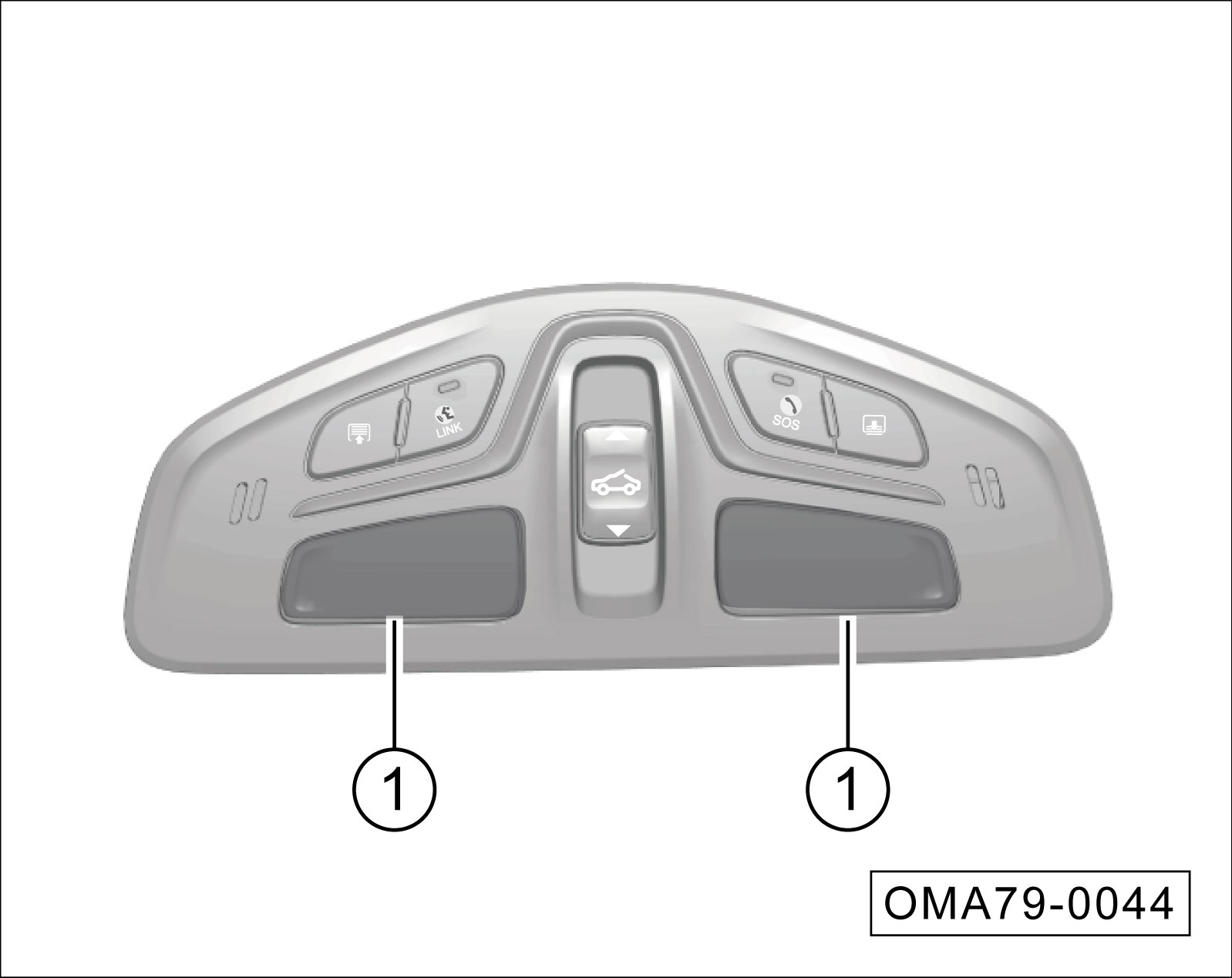 前车顶照明灯熄灭时,触碰对应侧的前车顶照明灯①点亮;再次触碰对应侧的前车顶照明灯熄灭。