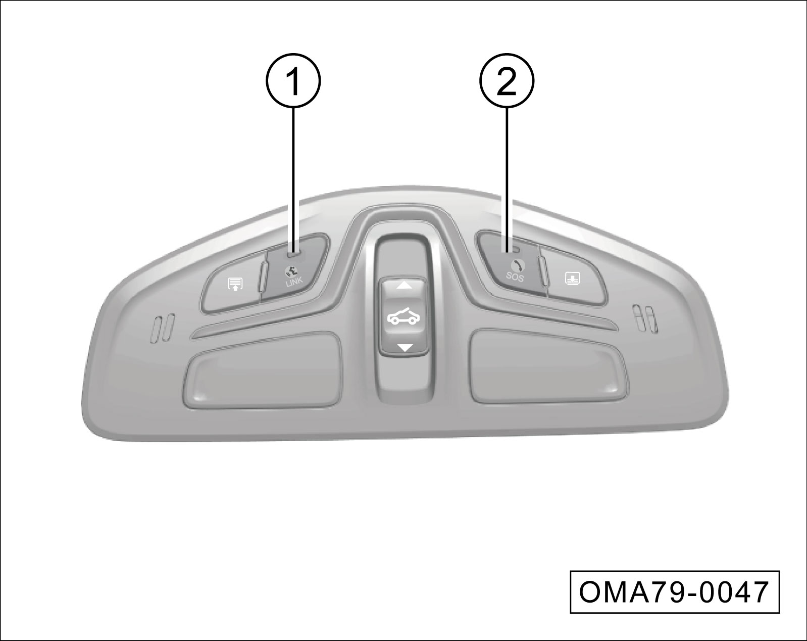 LINK按键①:长按(3秒),广汽传祺车联网启动道路救援功能,呼叫道路救援电话(该电话号码是广汽传祺特约店的救援电话号码)。电话拨通后,广汽传祺特约店的救援人员将为您提供服务。