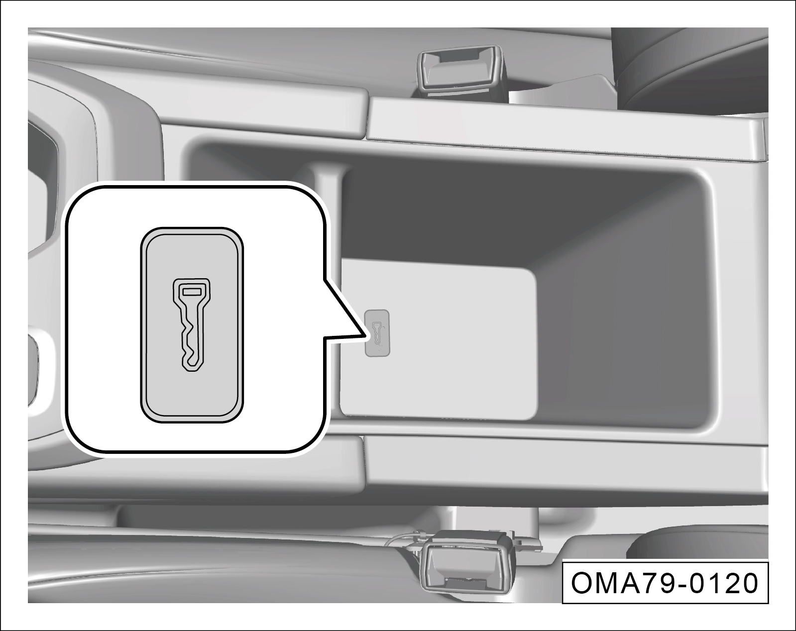 若由于智能遥控钥匙电池电量低,组合仪表显示屏提示“未检测到钥匙”时,可以把智能遥控钥匙水平放在前排中央扶手箱底部钥匙标记处,然后按启动开关切换到“ACC”或“ON”挡位,或踩下制动踏板,启动开关背光灯变为绿色后,按启动开关,启动发动机。