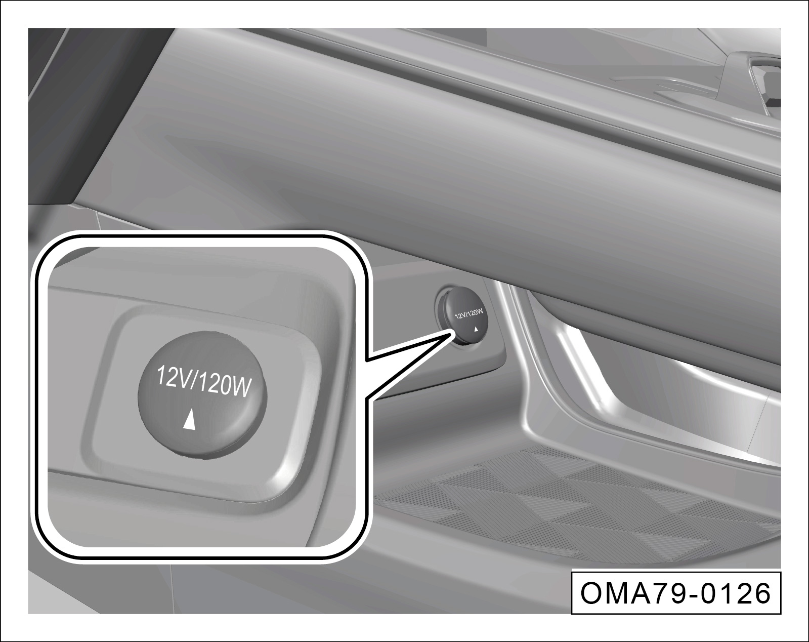 掀开12V电源饰盖,将电源接头插入车载12V电源,启动车辆。