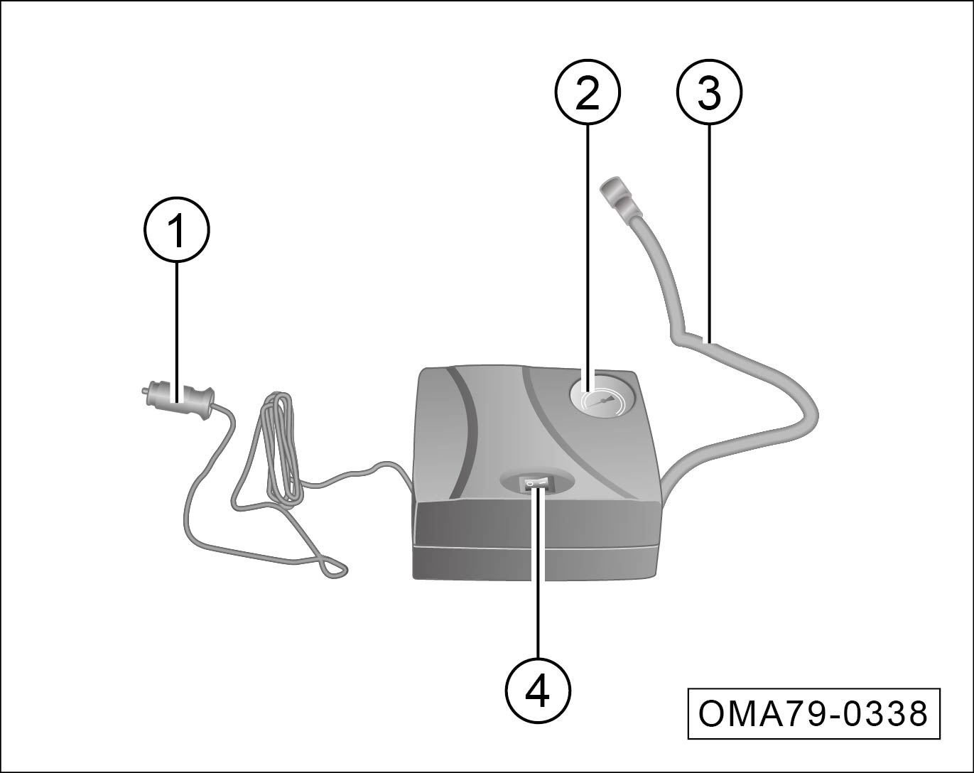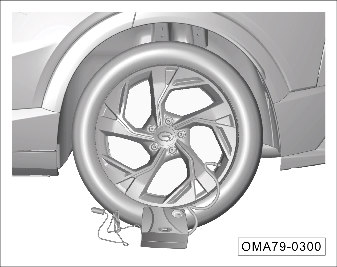 当轮胎胎压不足时,可使用随车配备的充气泵进行打气。
