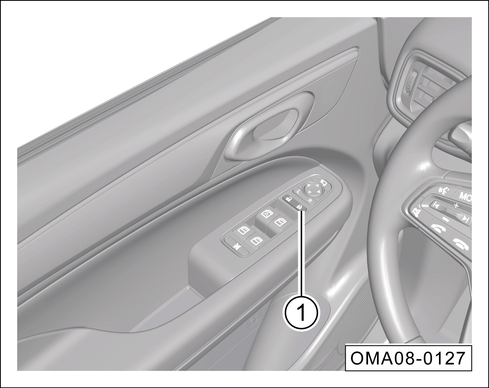 闭锁车门:按压中央门锁按键①的