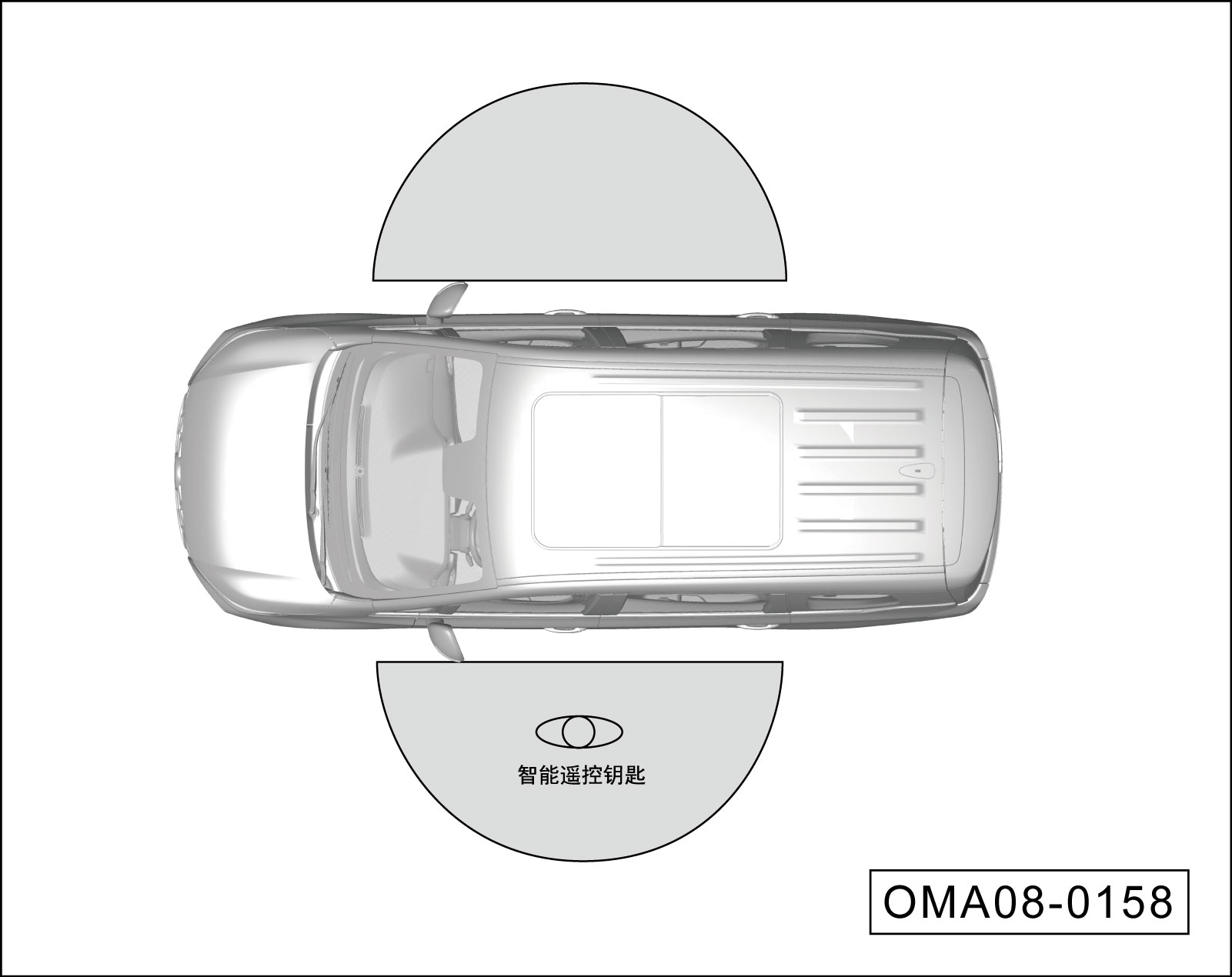 在距离车辆2m范围内未检测到智能遥控钥匙。