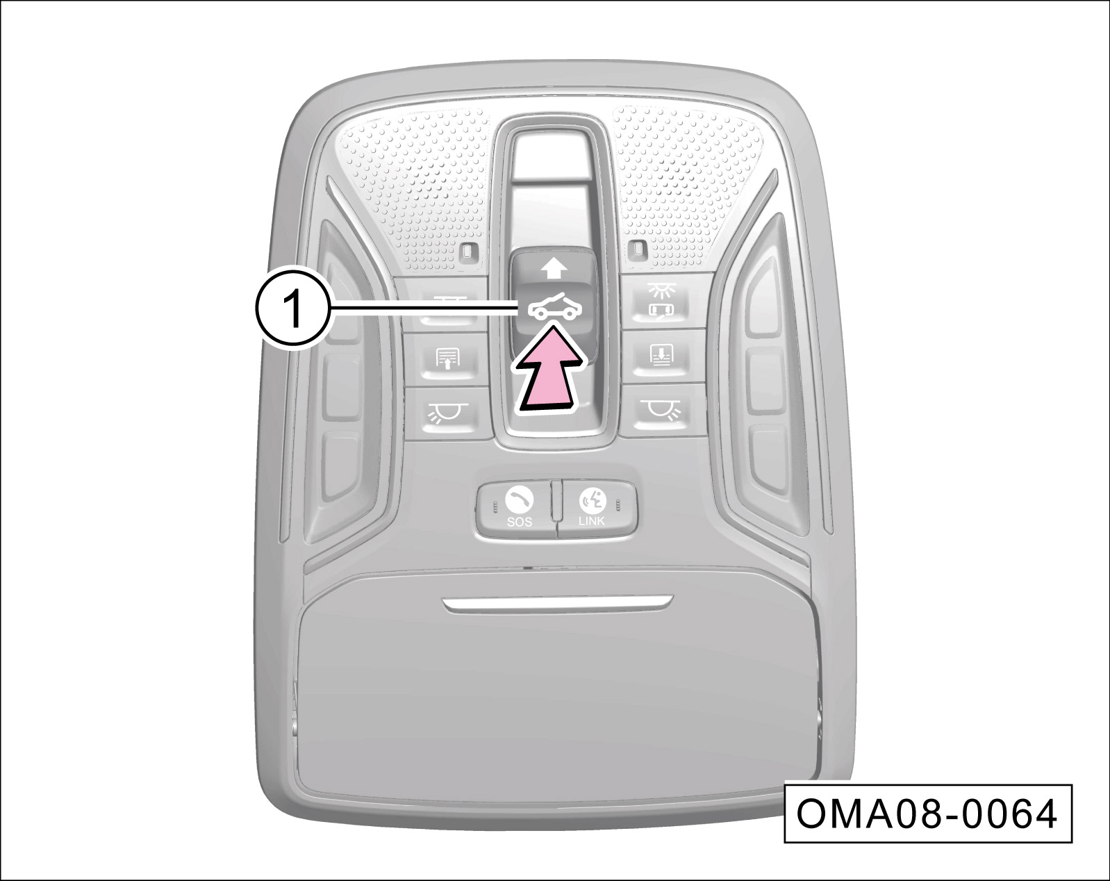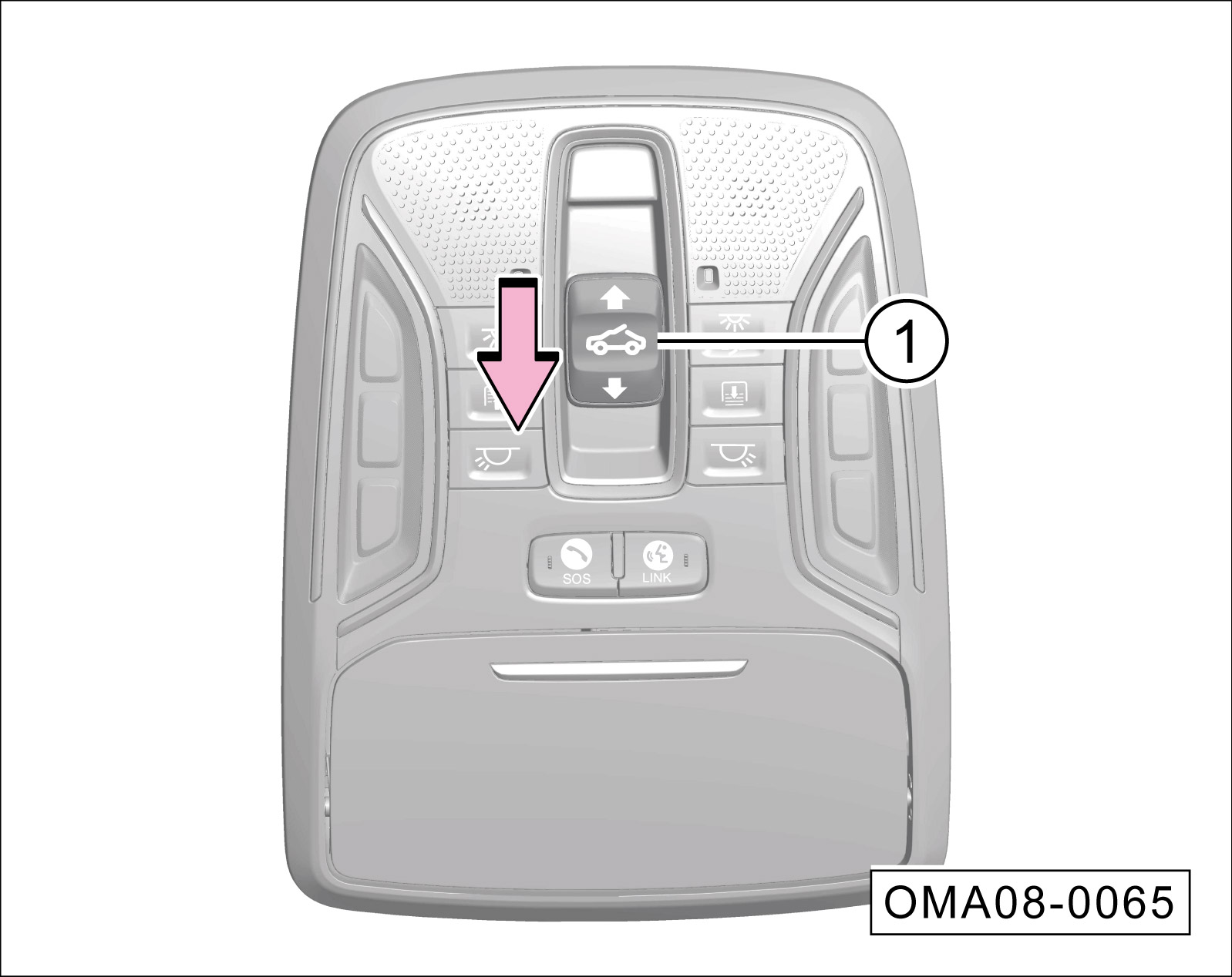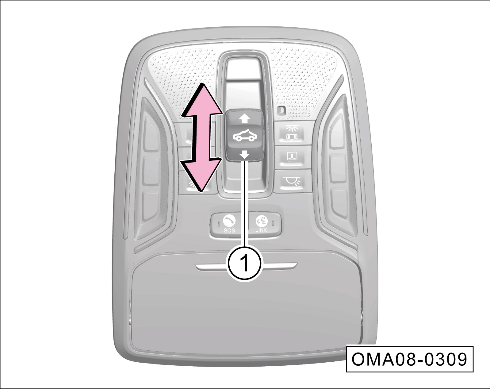 天窗在起翘状态时,向上按压天窗开关①的
