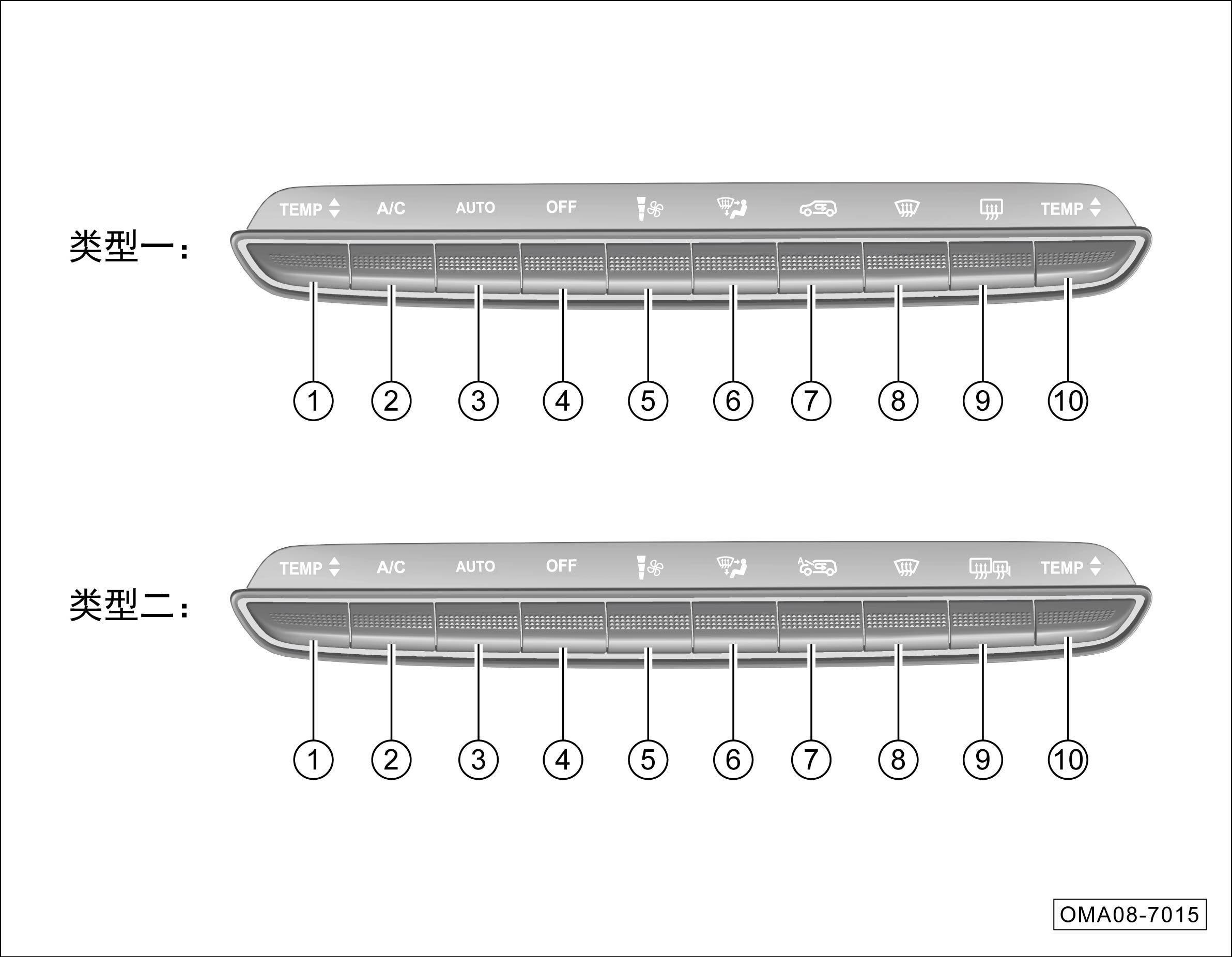 (右侧)按键无作用;操作AUTO按键、A/C按键、