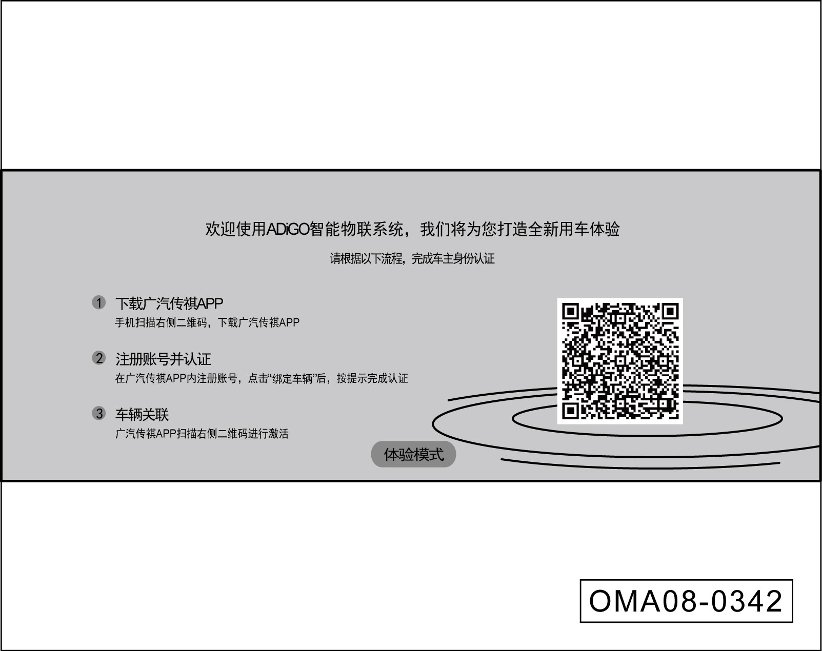 当用户首次使用车机时,需要进行车主实名认证来激活车机(可点击“体验模式”软按键跳过此页面)。