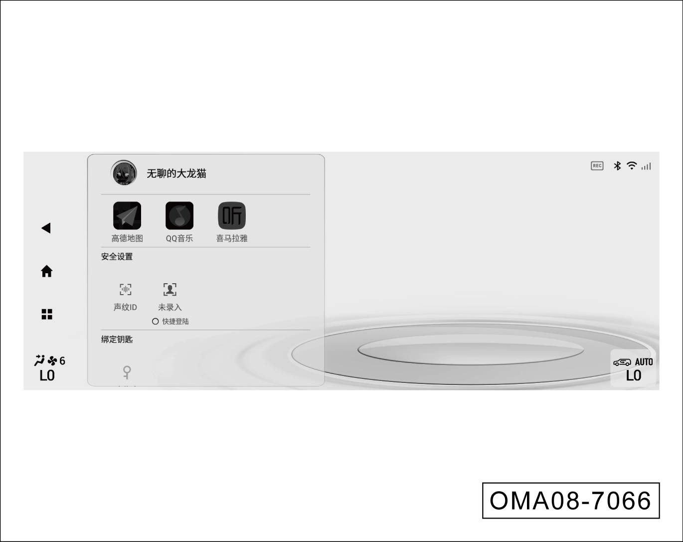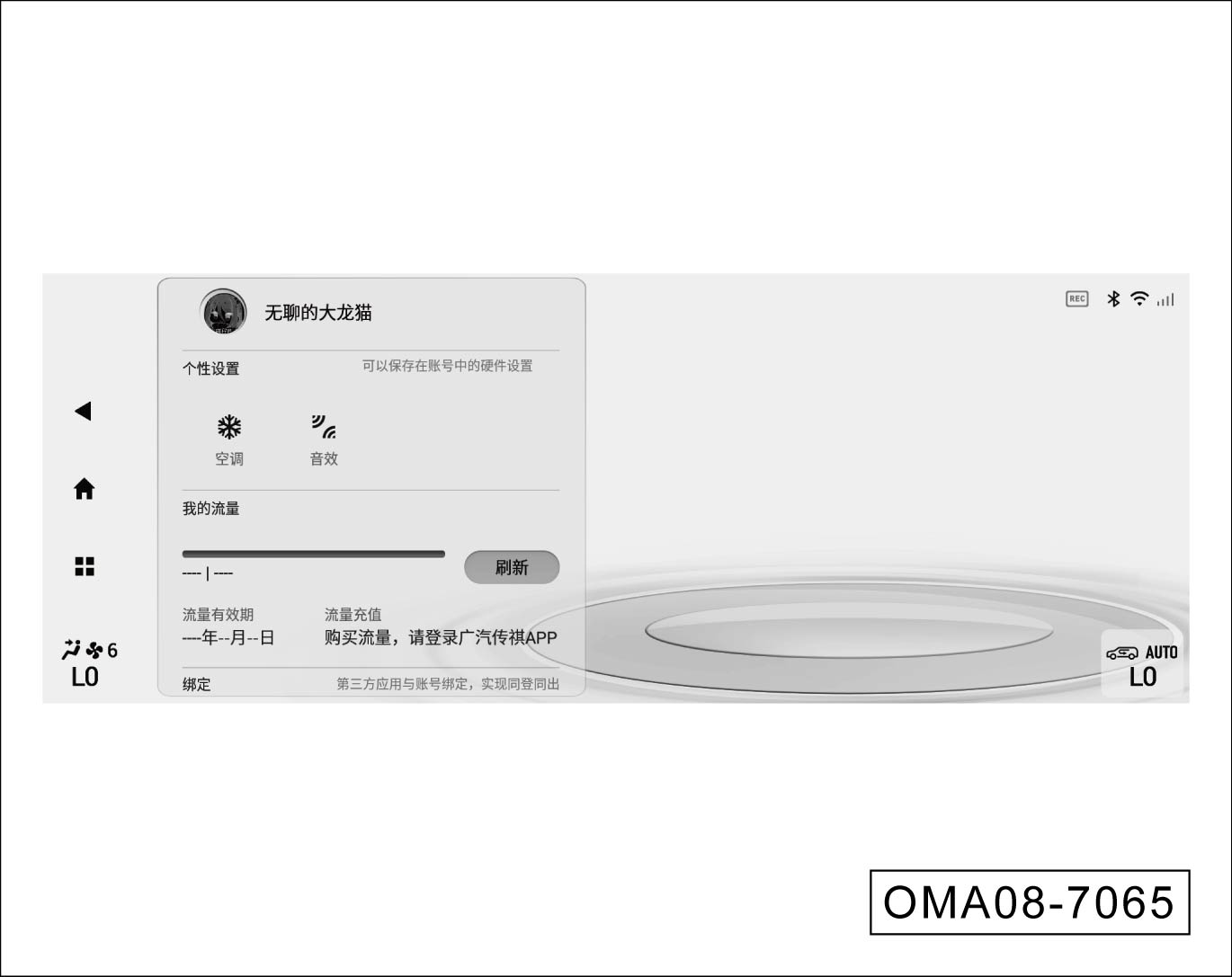 用户在个人中心页面,可在“绑定”区域,点击选择将“QQ音乐”、“喜马拉雅”、“高德地图”的个人账号,与当前车机账号进行绑定。绑定后自动同步上述APP内的用户数据和使用习惯。