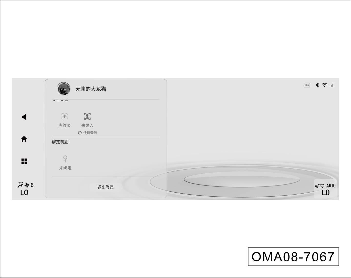 个人中心页面点击“退出登录”软按键后,并选择确定退出当前账号。账号退出的条件为:“P挡且车速为0”,不满足条件退出不成功并提示“为了您的行车安全,请确保车辆静止时进行相关操作”。