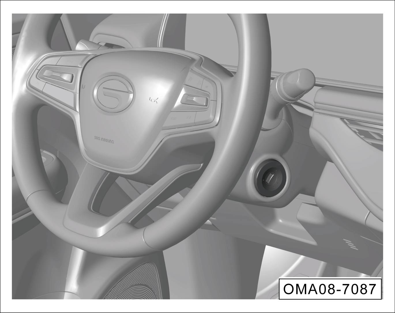 当钥匙不能从“LOCK”挡位拧至“ACC”挡位时,可轻微转动方向盘,分离方向盘锁止机构,直至能够拧动钥匙切换点火开关挡位。
