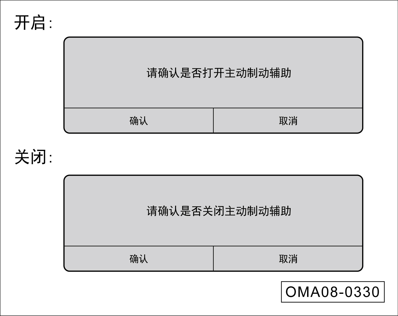 软按键后将弹出如上二次确认窗口,再短按“确认”,即可设置开启或关闭该功能。