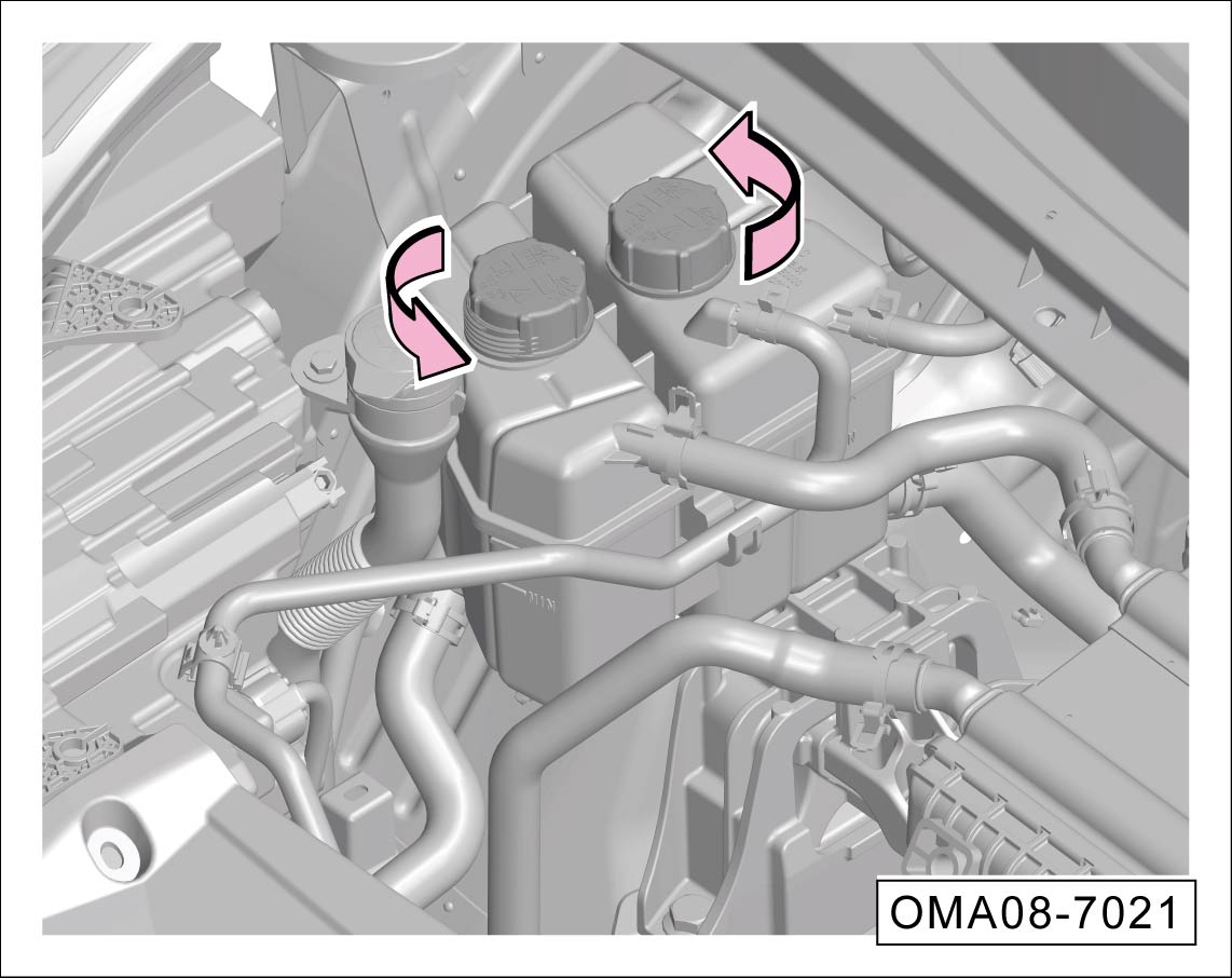发动机未冷却时,冷却系统处于高压状态,切勿打开冷却液膨胀箱盖,否则会被冒出的冷却液烫伤。