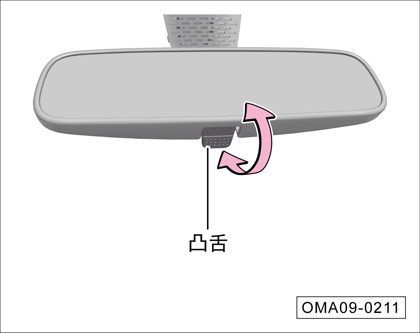 手动调整车内后视镜,可减弱从后方照射进来的反光,使后视野处于最佳观测状态。