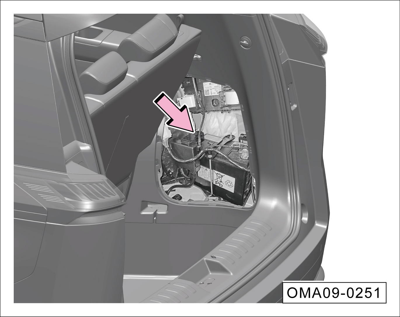 低压蓄电池位于行李箱右侧,在-箭头-处撬开装饰盖即可看见低压蓄电池。