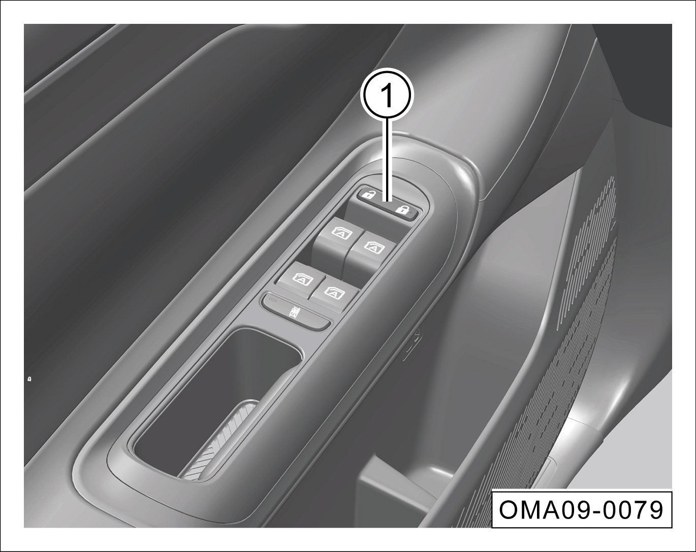 点击中央门锁按键①可以在车内闭锁/解锁所有车门。