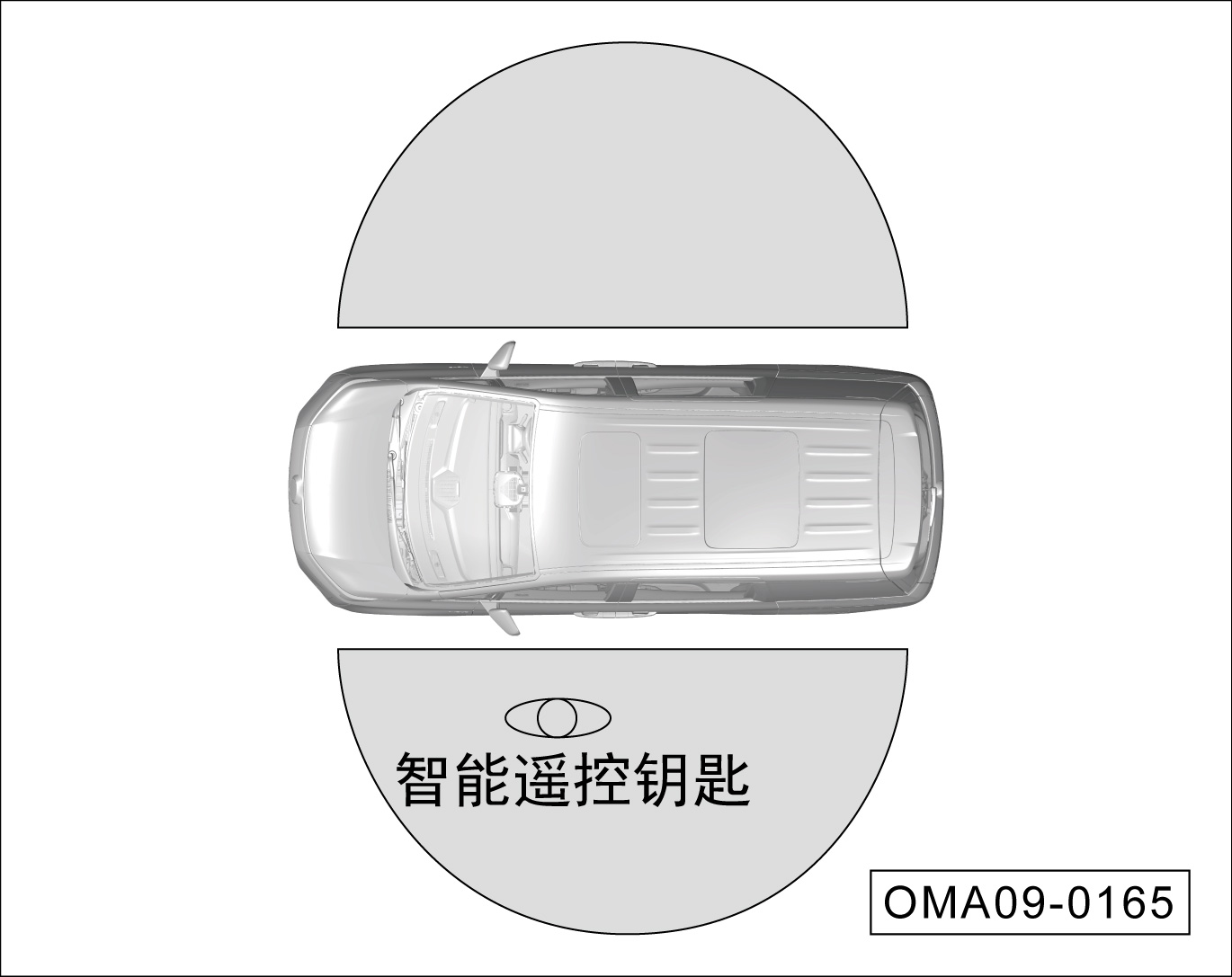 车辆停放位置与遥控钥匙或智能蓝牙钥匙*距离过近时,车辆可能因被频繁唤醒导致低压蓄电池亏电。离车后,遥控钥匙或智能蓝牙钥匙*与车辆距离应大于10m。