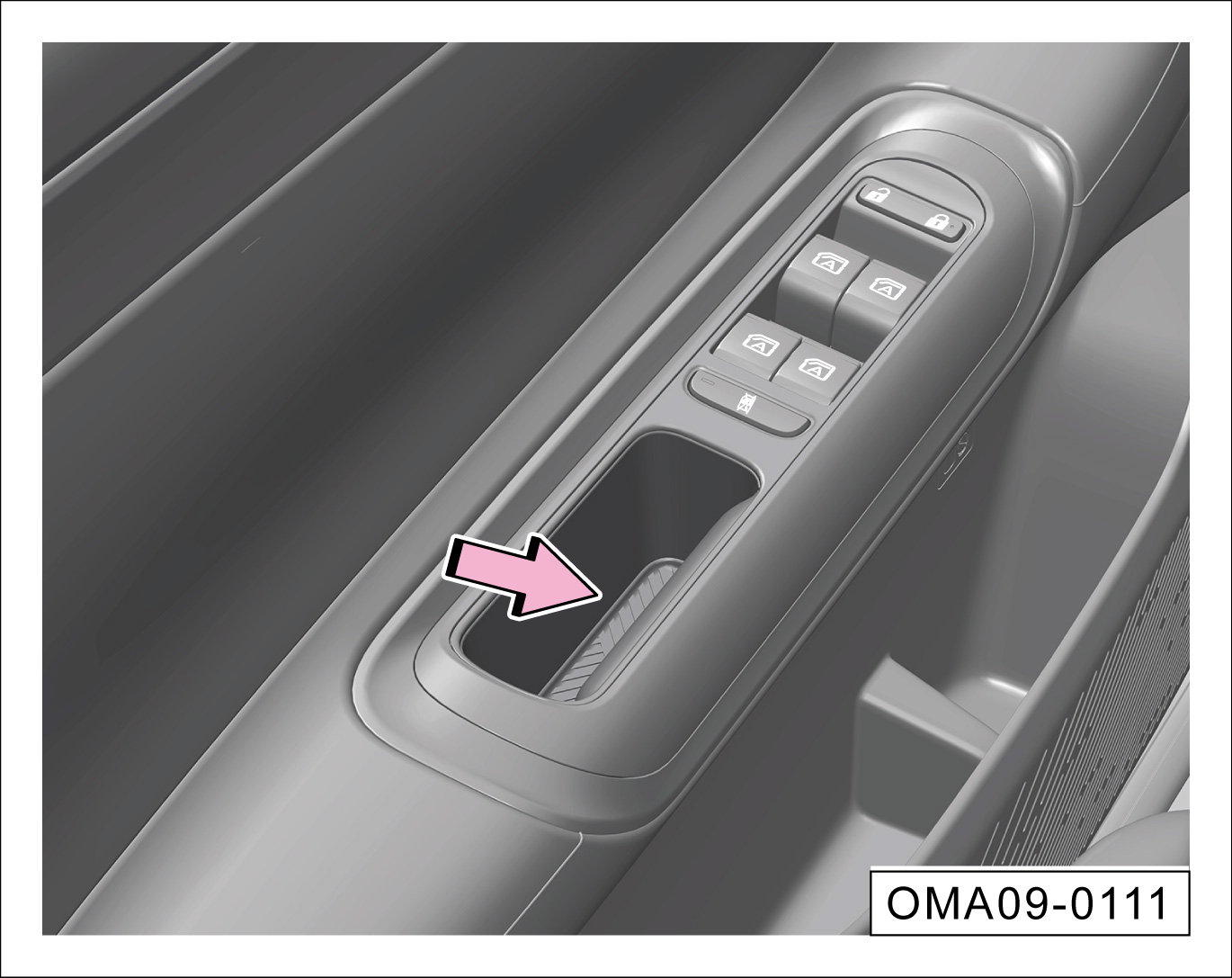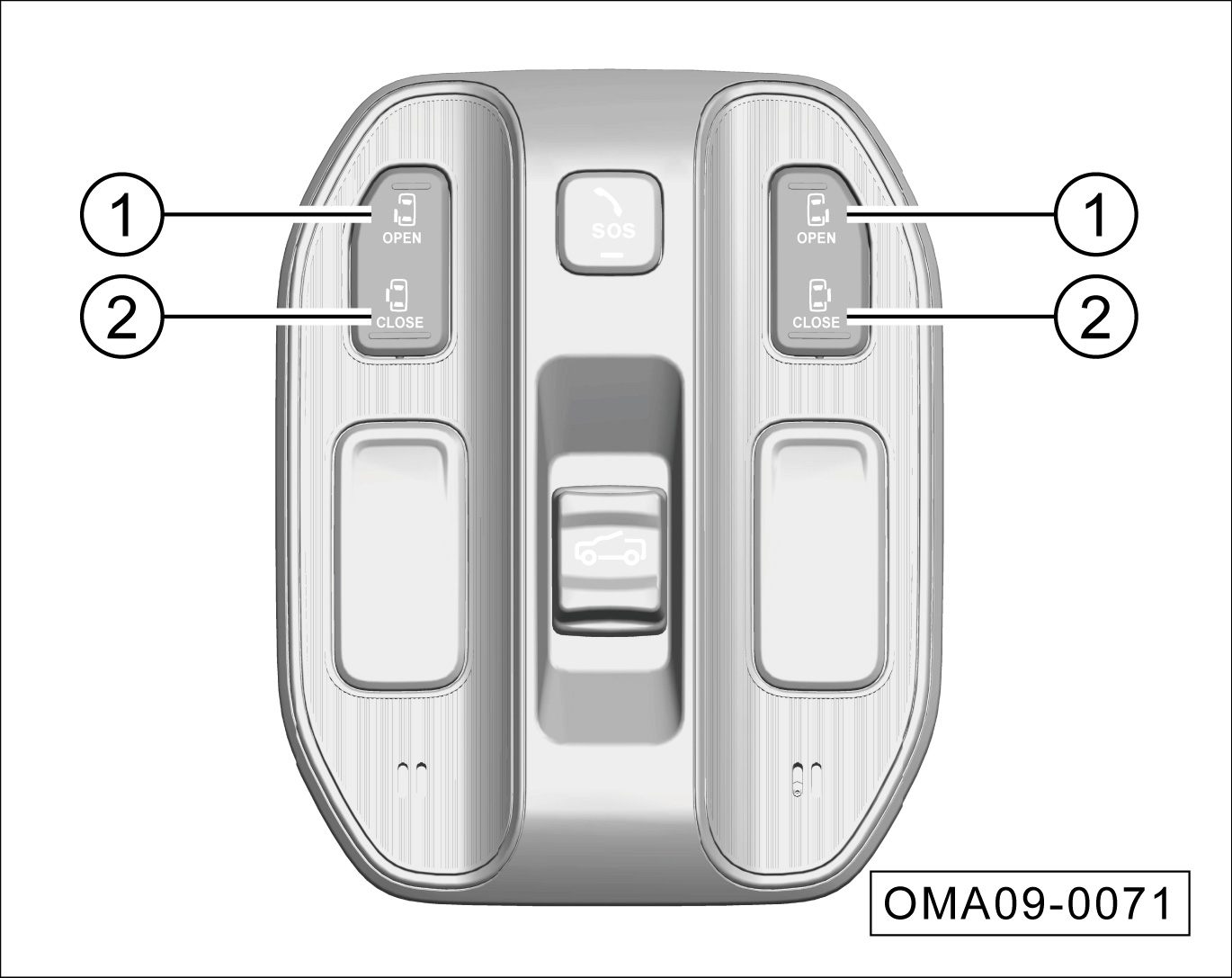 长按滑移门按键①,电动开启对应侧滑移门。