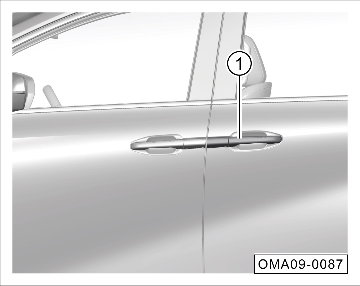 在滑移门全开状态下,拉动外把手①解锁并拉动滑移门,关闭对应侧滑移门。