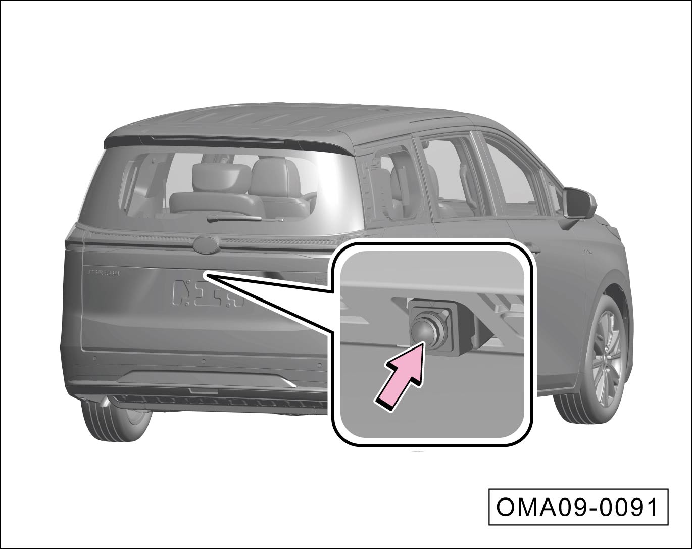 后视摄像头安装在牌照灯旁。