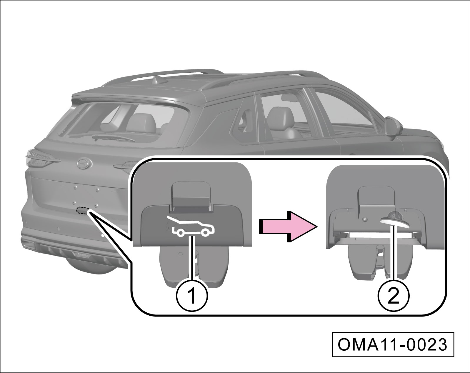 打开后背门饰盖①。