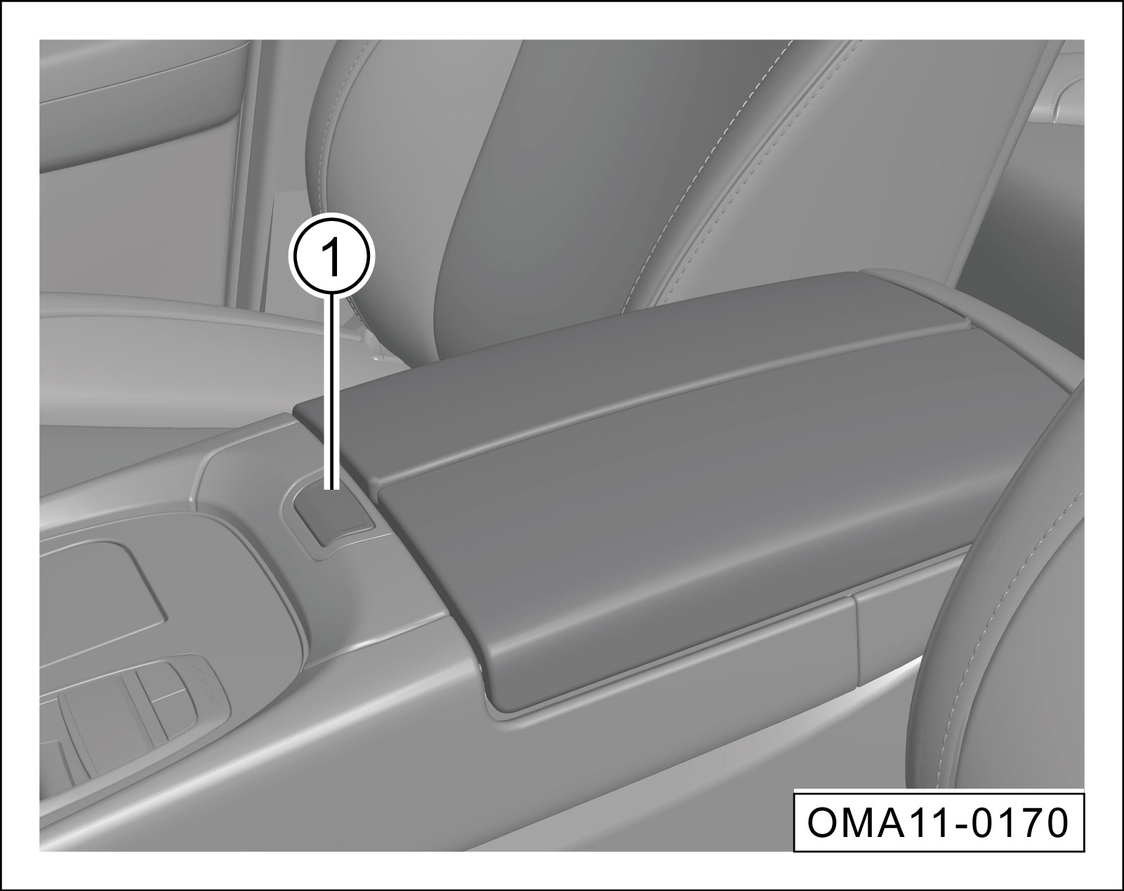 按压开关①打开前排中央扶手箱盖,可放置钱包等物品。