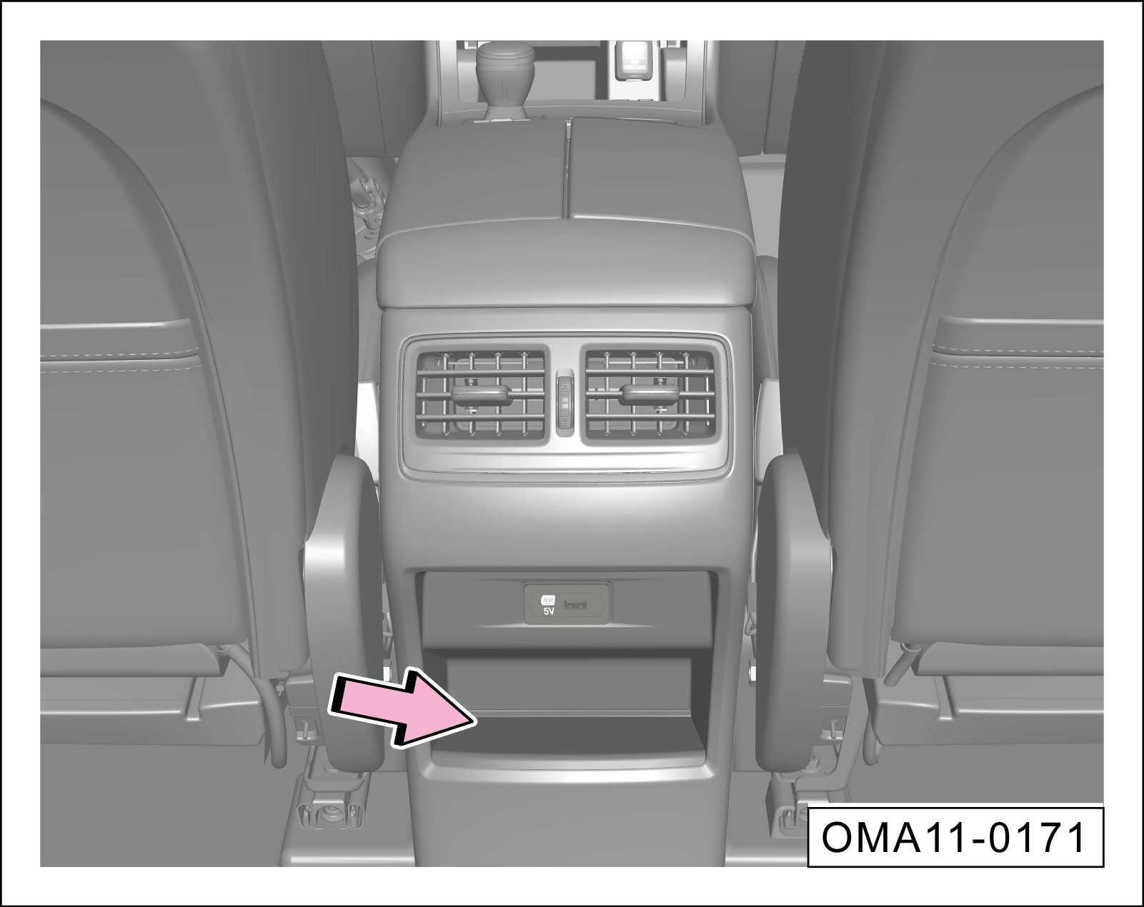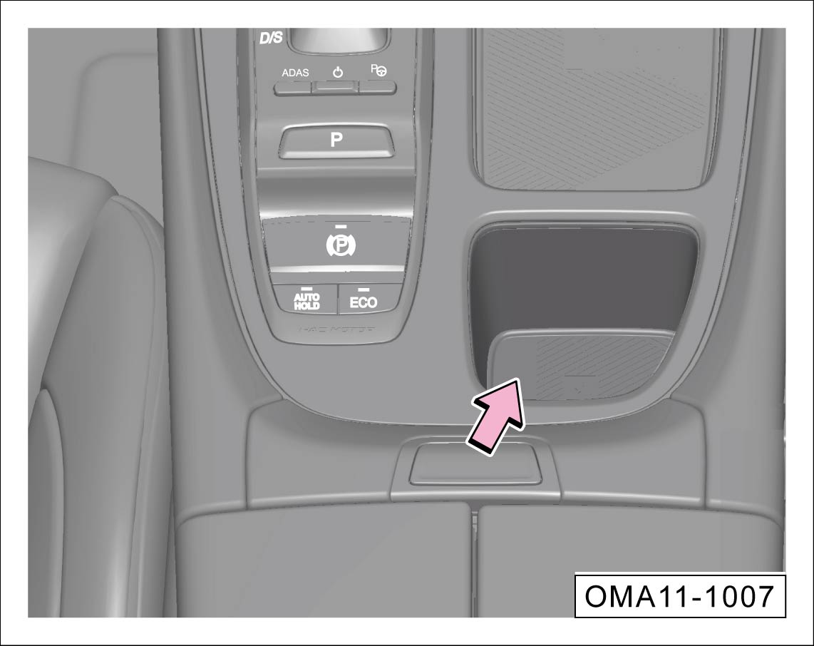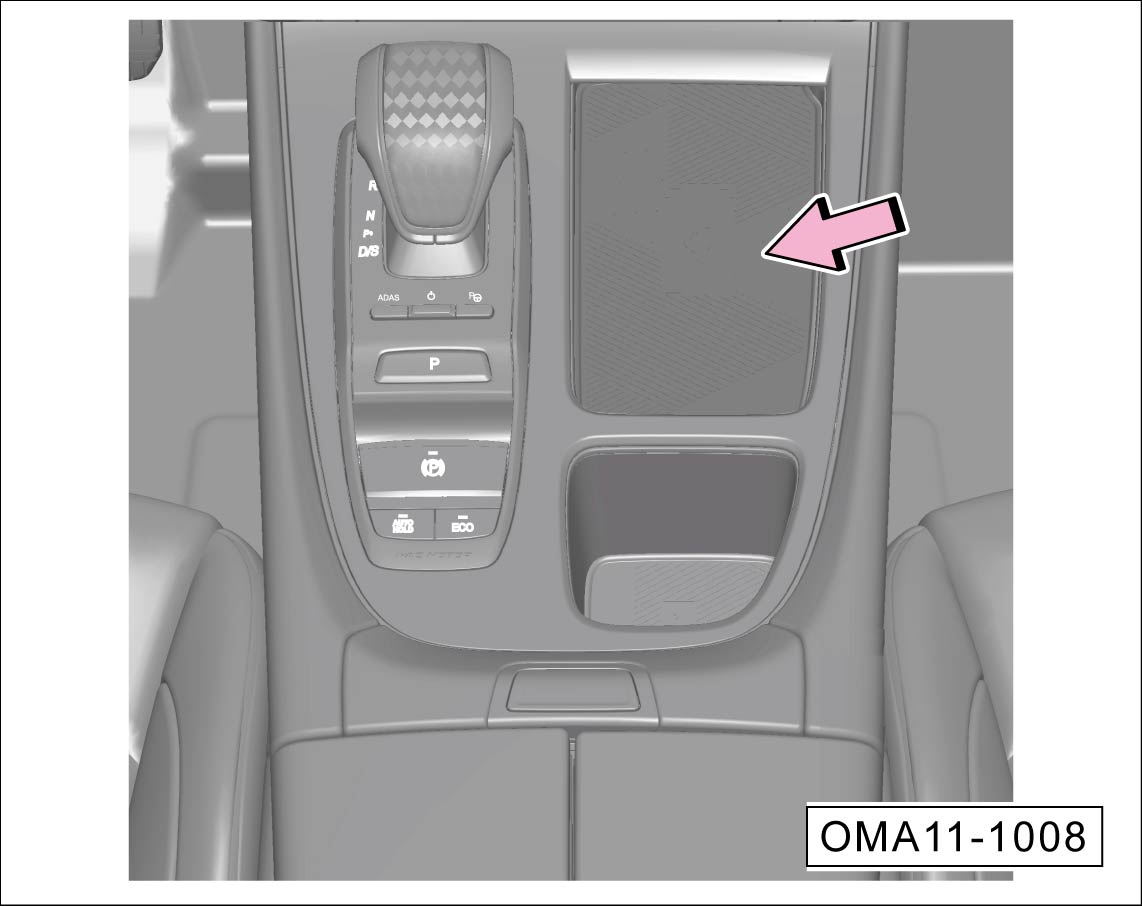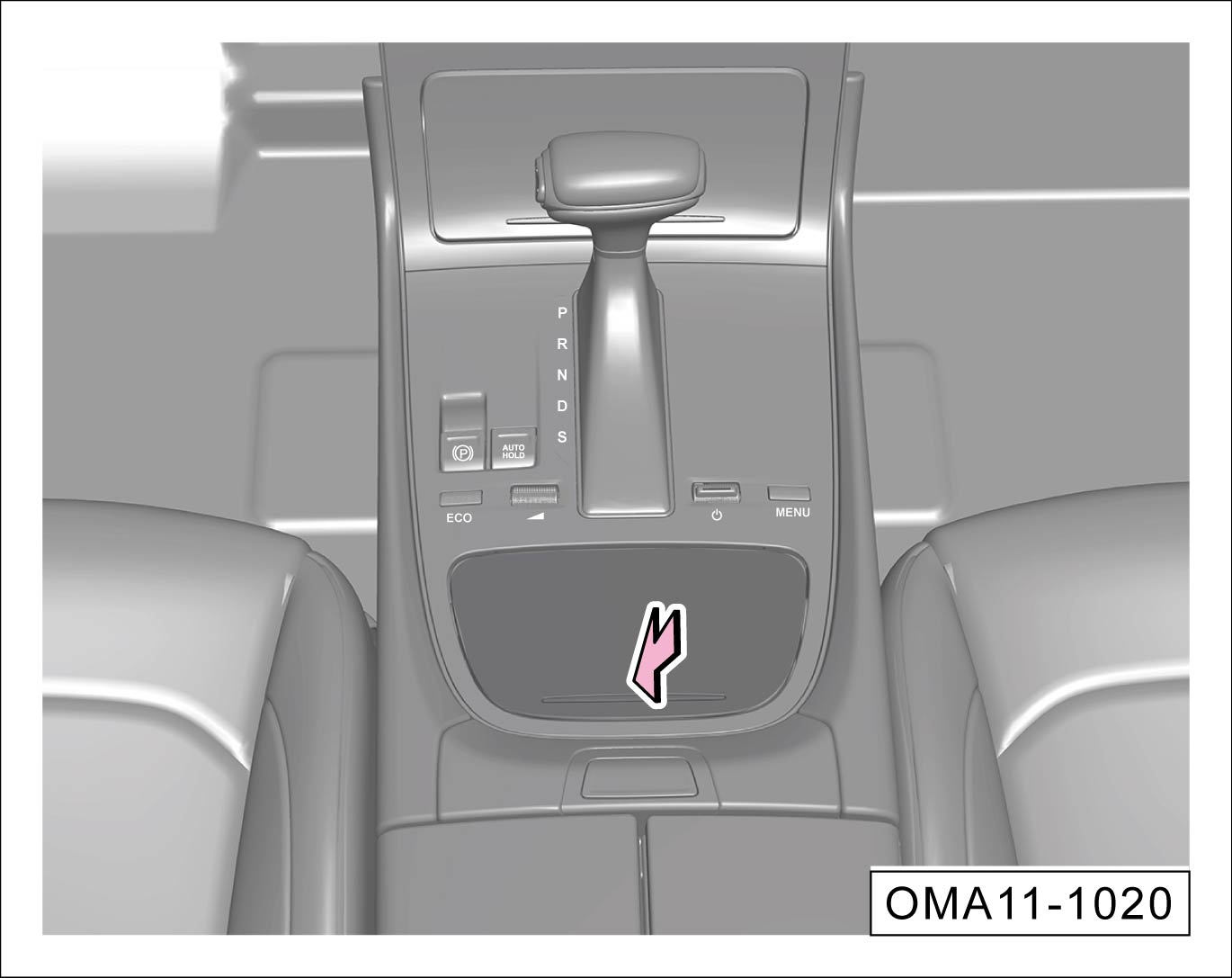 装备手机无线充电功能*的车型,此区域作为手机无线充电区域,必须关闭手机无线充电功能后才可放置物品。