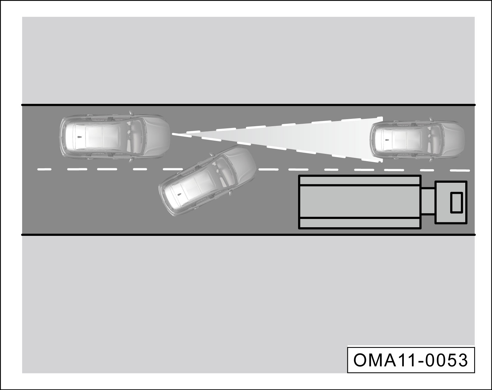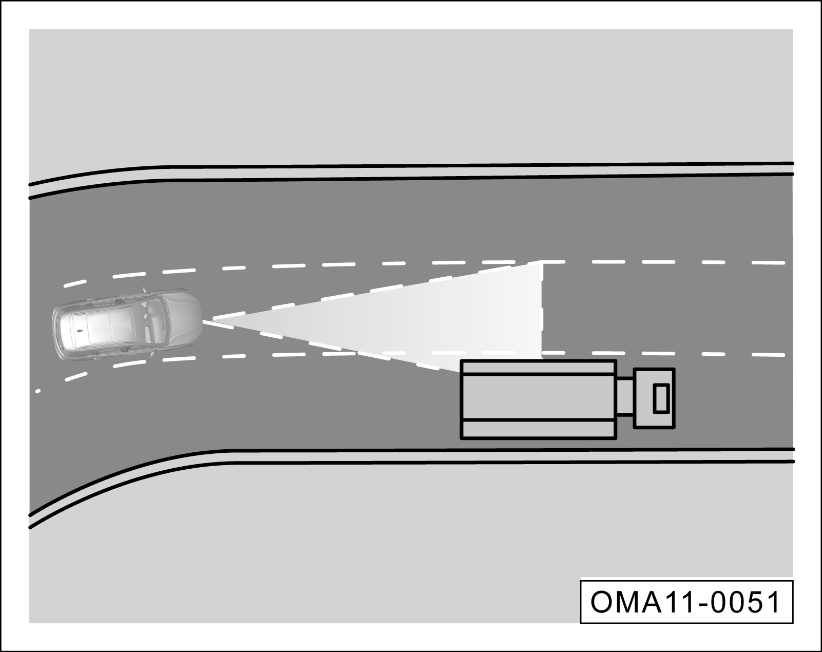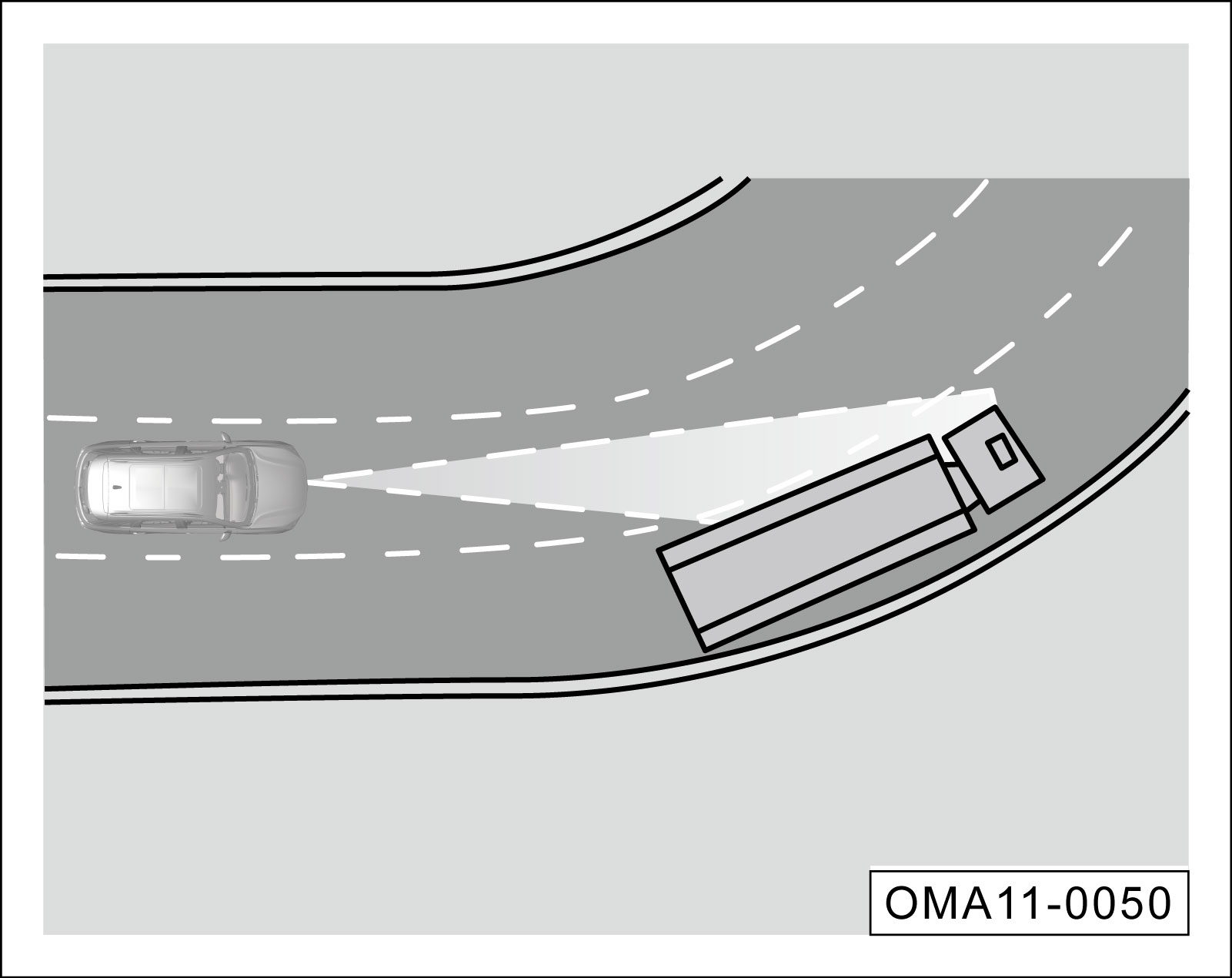 驶出弯道。驶出长弯道时,因为系统将预先计算行车道,所以雷达传感器可能会对相邻车道上的车辆作出反应而对本车制动。此制动过程可通过踩下油门踏板来中断。