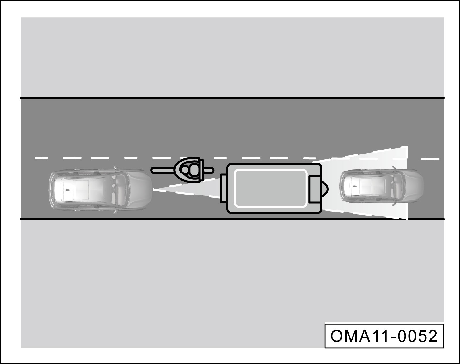 ACC系统在车辆短暂停止或者获得驾驶员的确认(控制按键或者油门踏板)后能够使车辆自动驶出。在这段时间内驾驶员必须保证在车辆的正前方没有障碍物或者其他的交通参与者(例如:行人、自行车、摩托车、三轮车)。