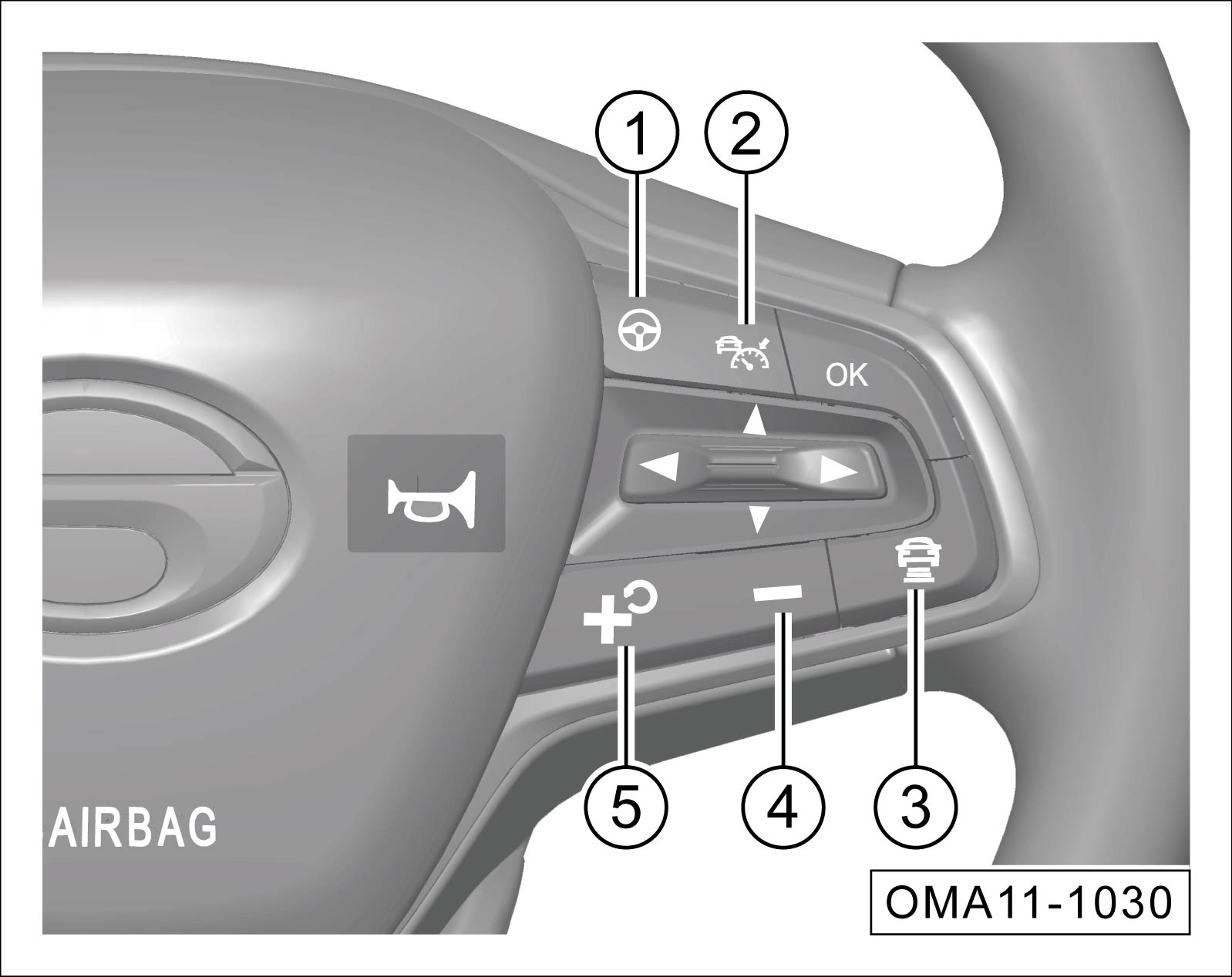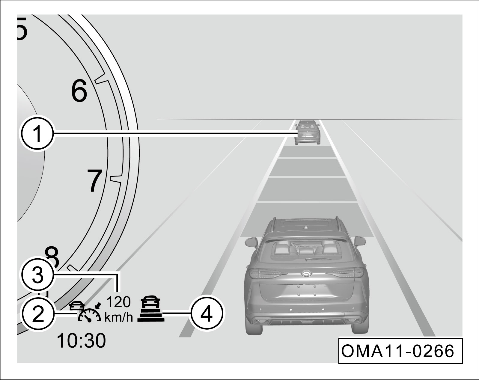组合仪表相应的指示灯为白色时,可通过以下操作重新设定自适应巡航功能: