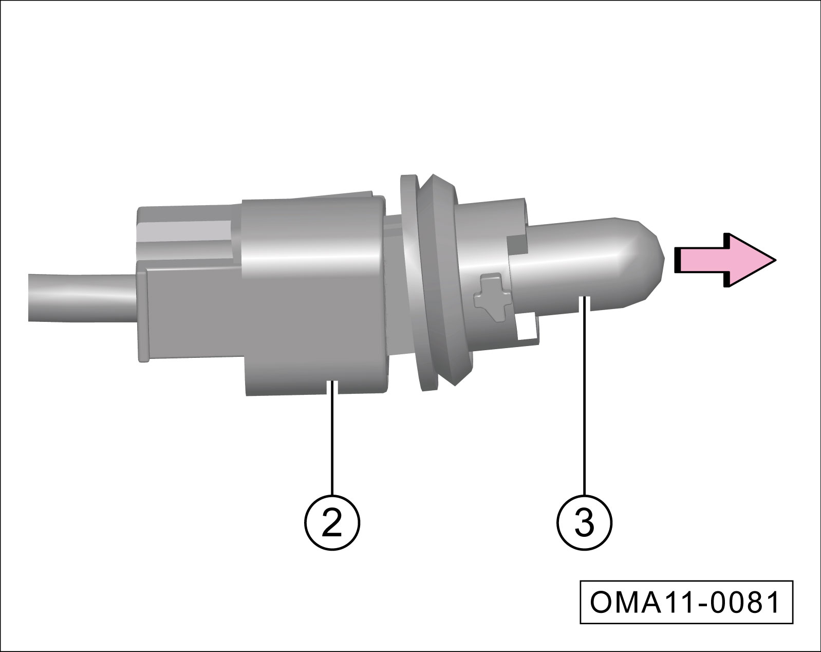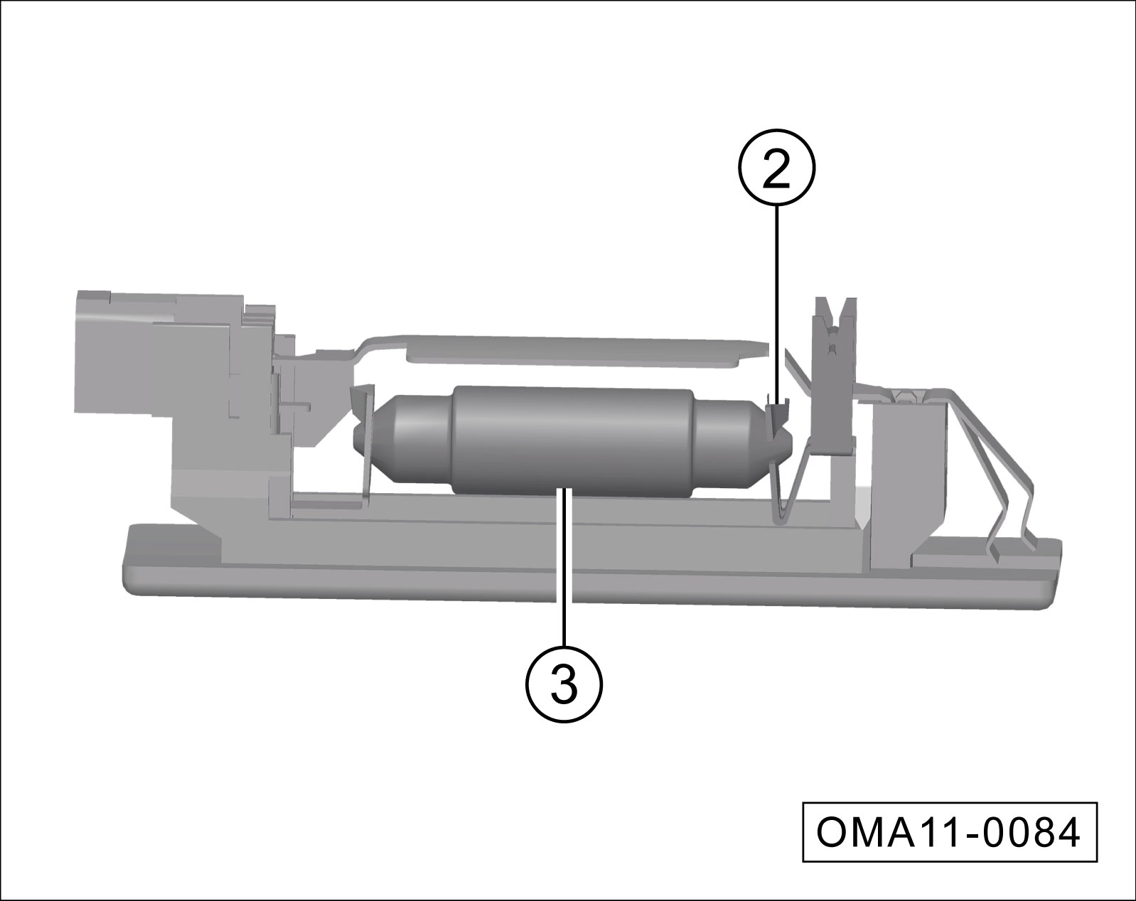 从牌照灯灯座②上拆下牌照灯灯泡③。