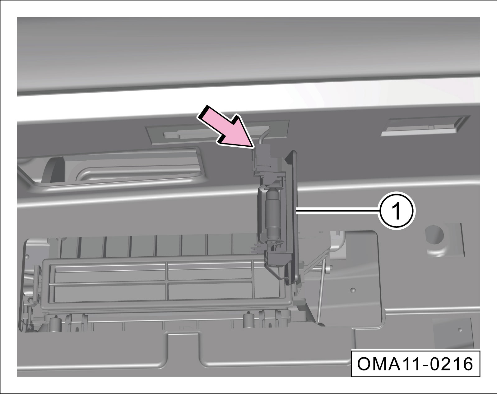 在-箭头-位置拆下手套箱灯①。