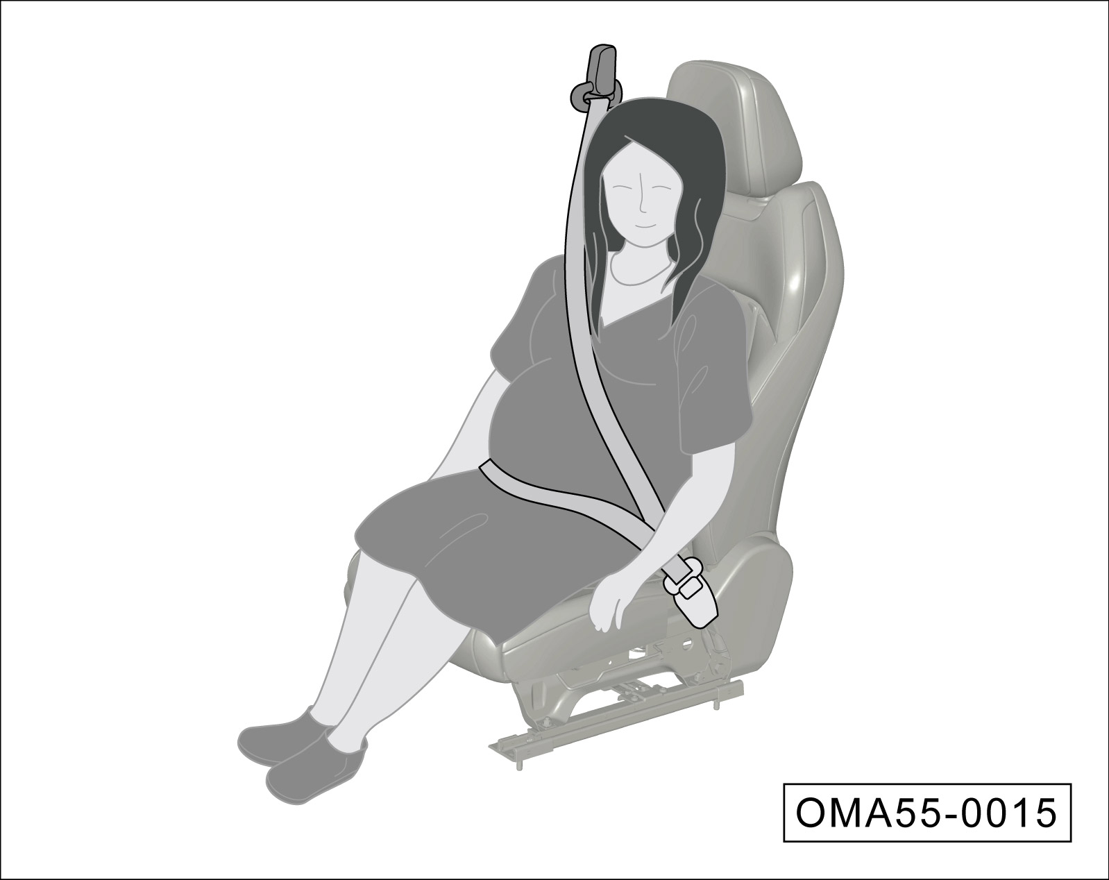 握紧锁舌,将安全带慢慢拉过肩部,并保证安全带的腰带部分尽可能低,切忌压于腹部。