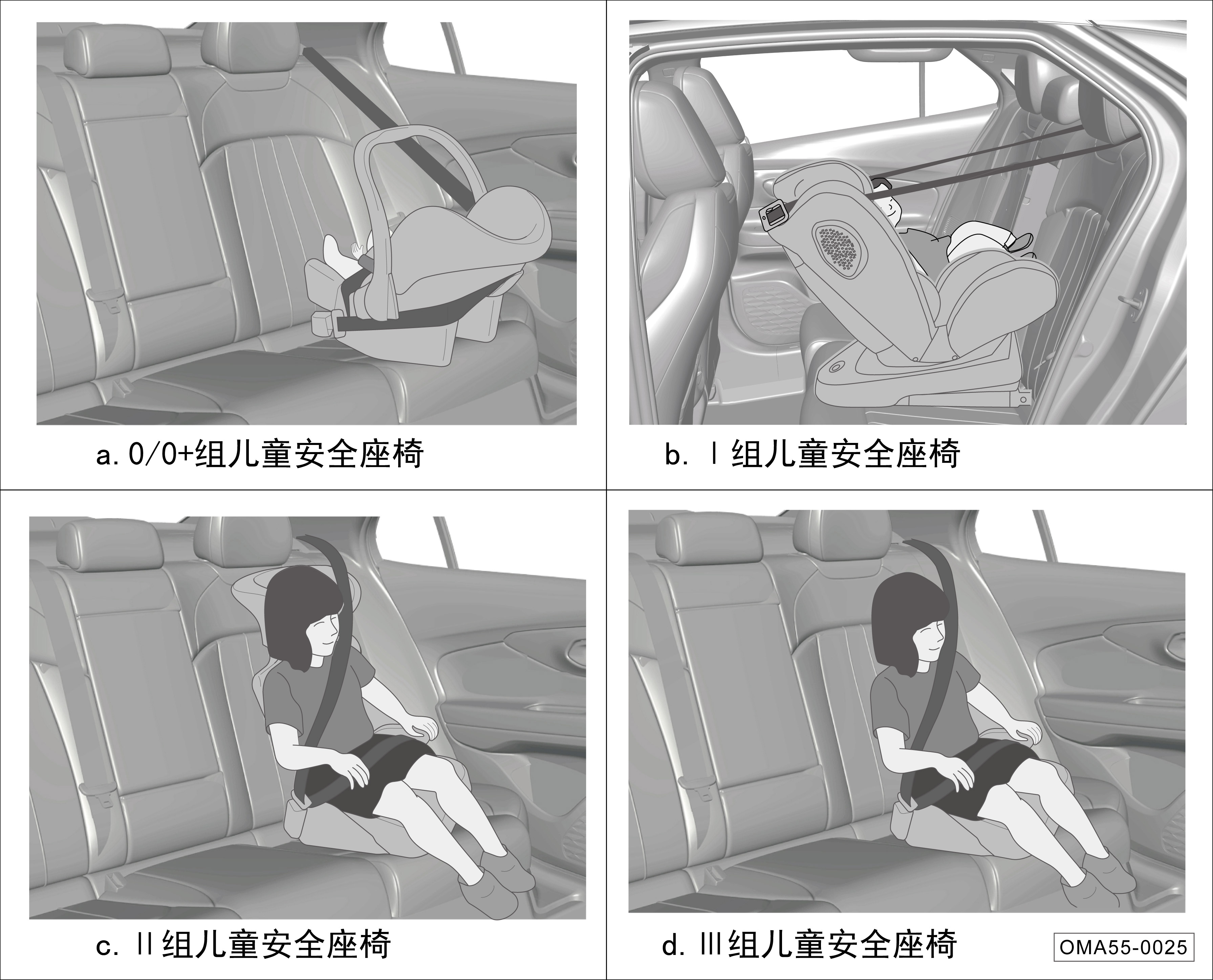 在实际安装儿童安全座椅过程中,务必参阅儿童安全座椅使用说明书,正确安装儿童安全座椅。