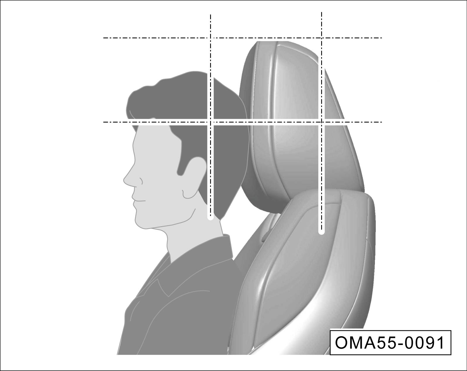所有驾乘人员必须按自身体型将头枕调整至(如图)正确位置。