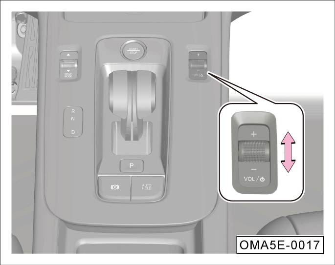 整车电源在“ON”挡位,通过滚动滚轮,可以调节音量大小。