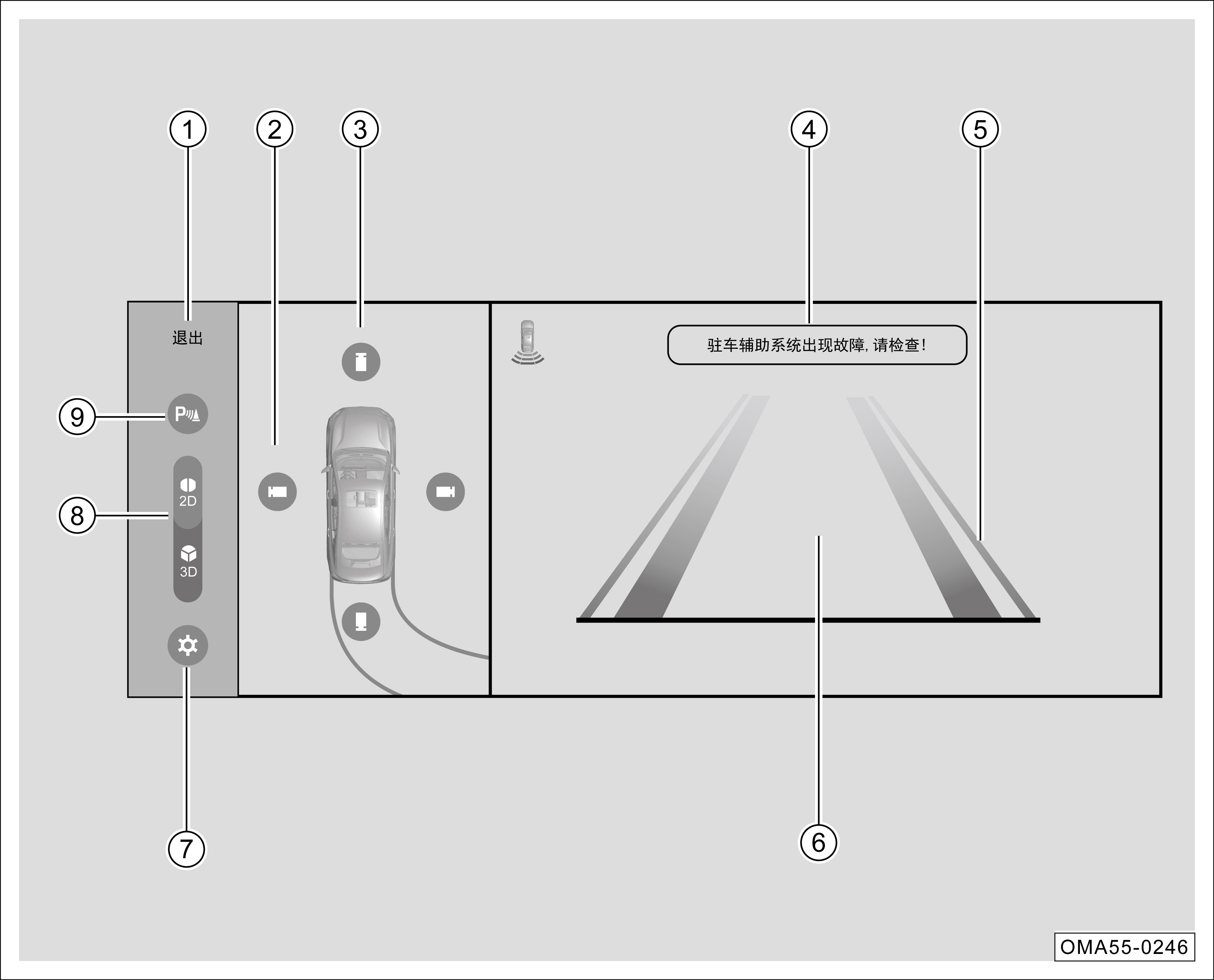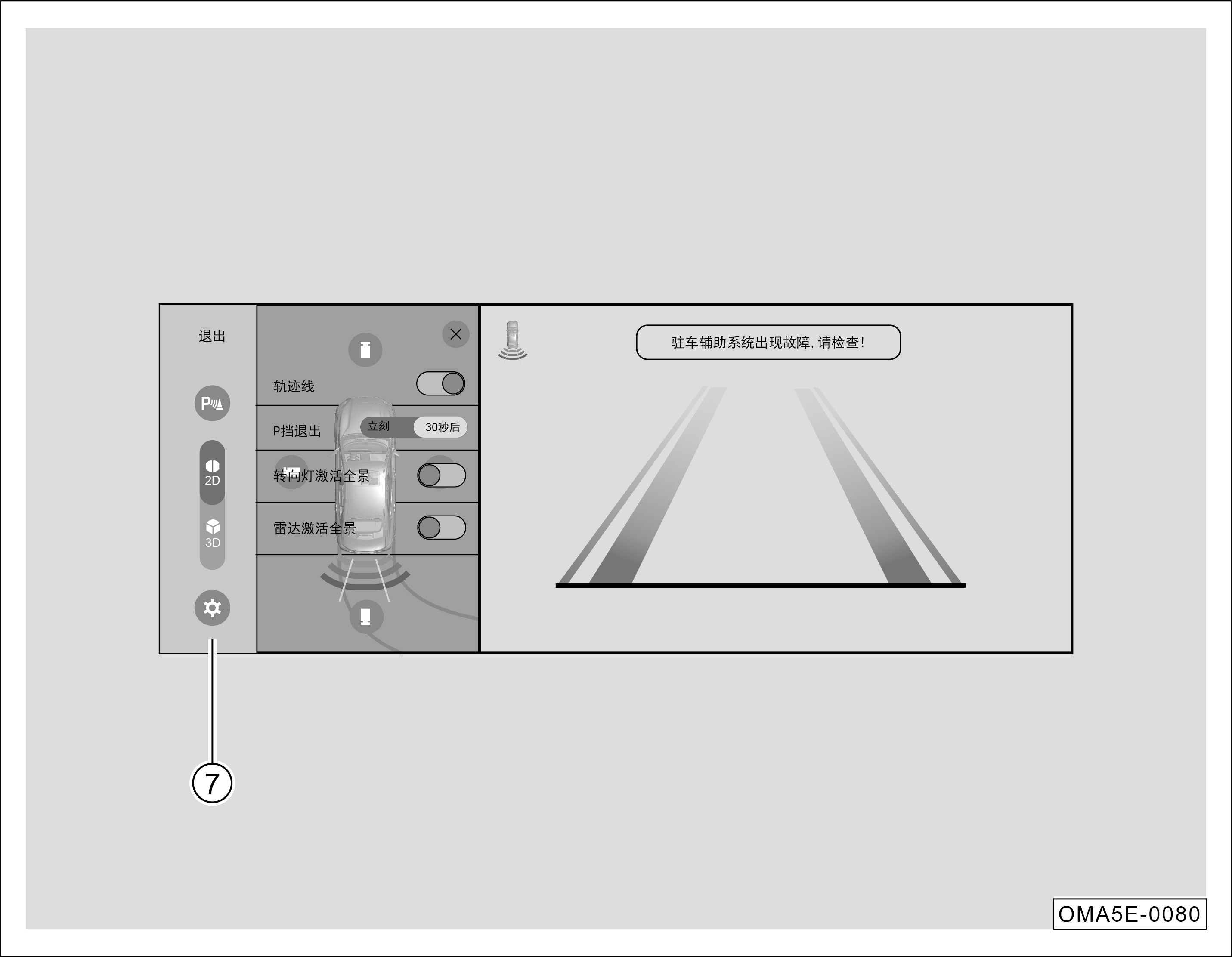 短按设置按键⑦,进入全景泊车设置界面,可对以下选项进行设置。