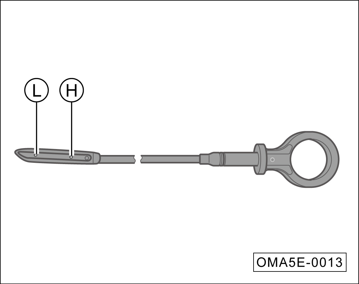 再次拉出机油标尺,读取测得的油位:油位应位于机油下限标记“L”与机油上限标记“H”之间。