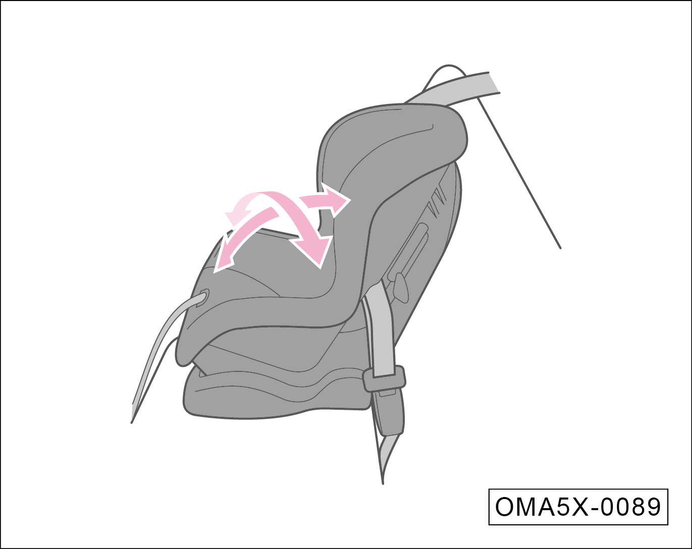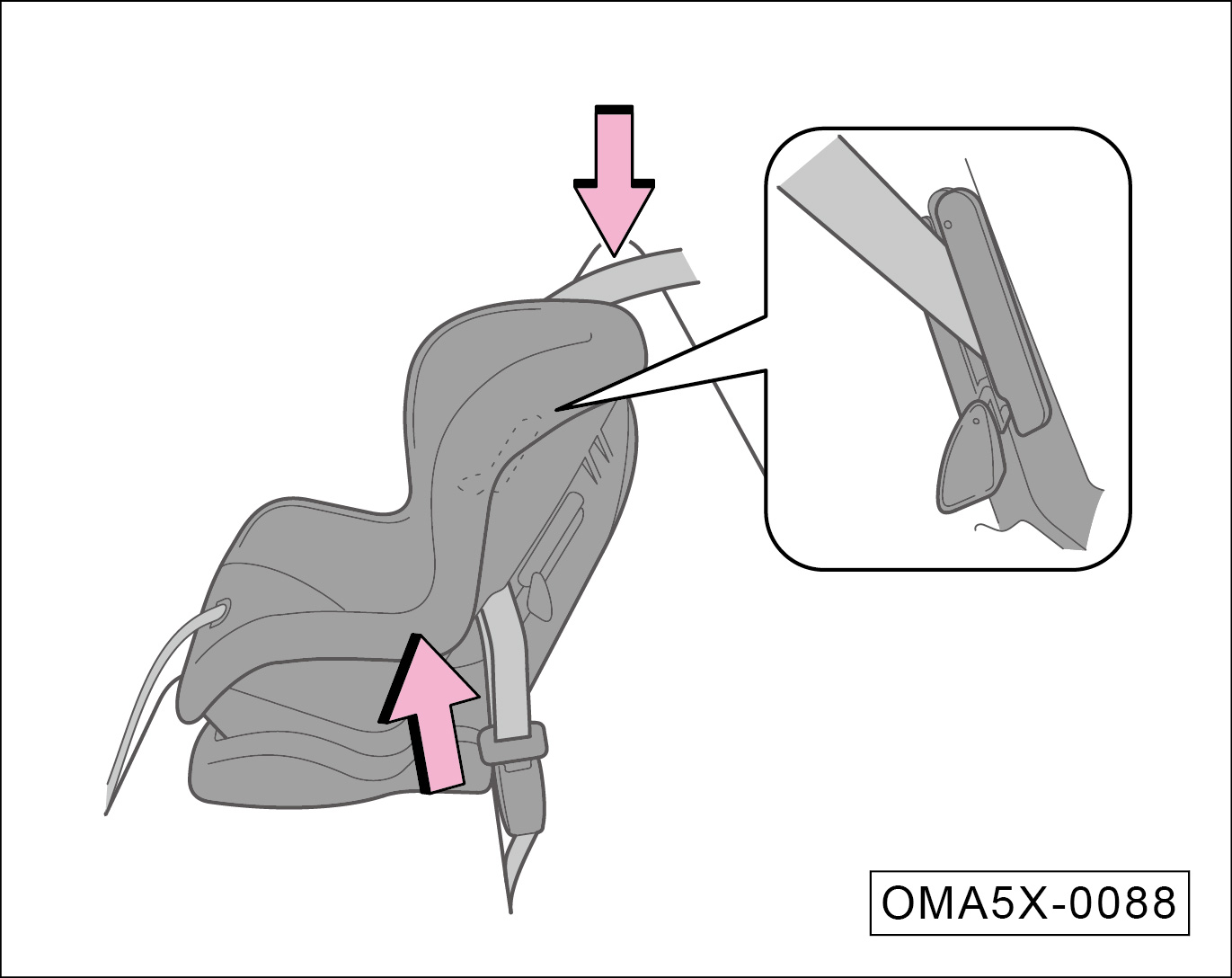 抓住锁扣附近的肩部安全带,向上拉起使腰部安全带不再松弛。此时,用自身重量压在儿童安全座椅上并将其推入车辆座椅。