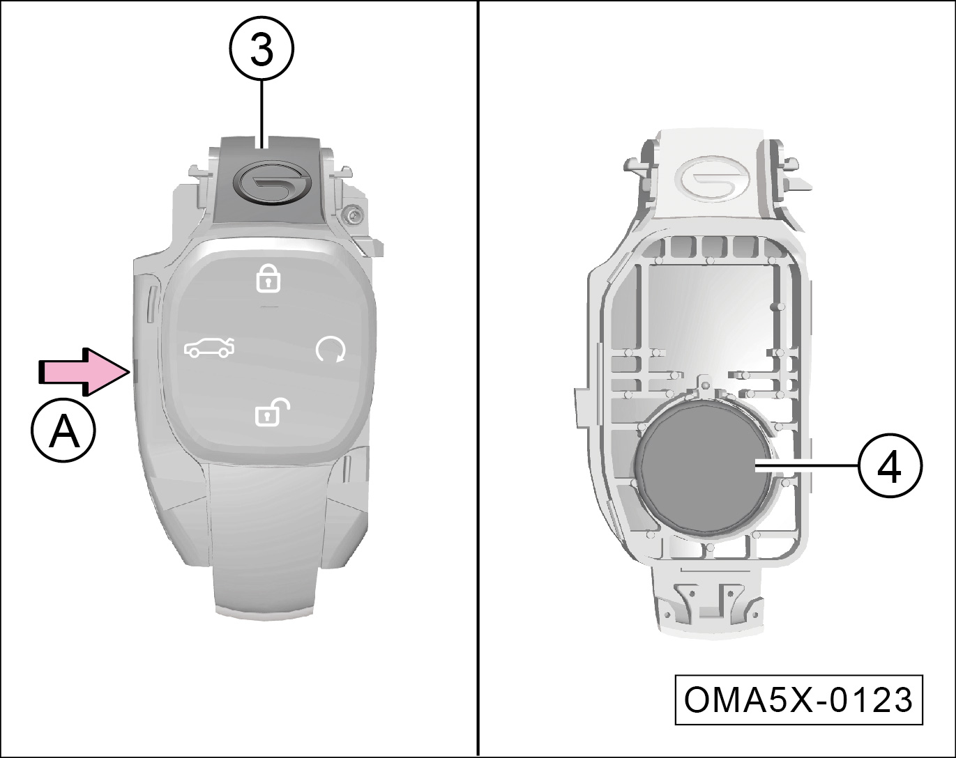 取出遥控钥匙电池④。