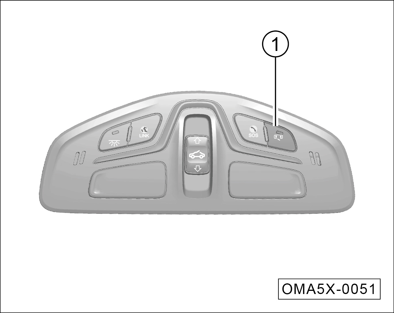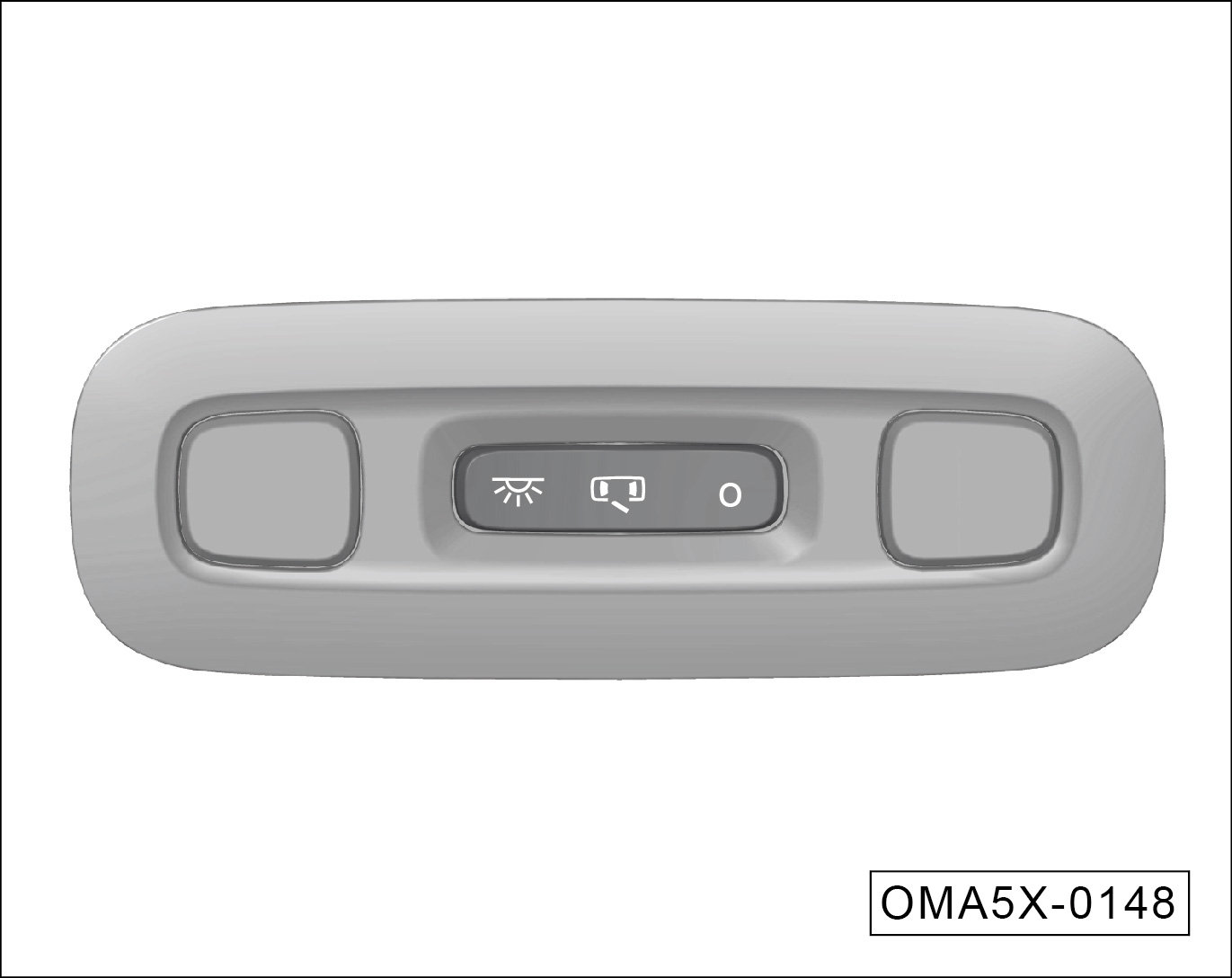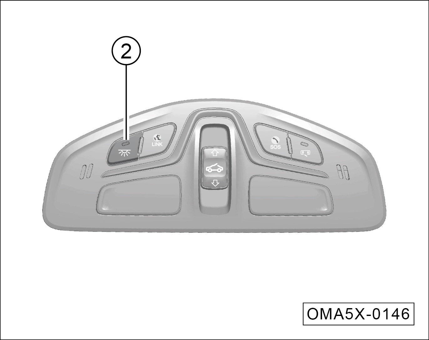 按开关①,按键灯点亮,打开车顶照明灯自动开启功能;再次按开关①,按键灯熄灭,关闭车顶照明灯自动开启功能。